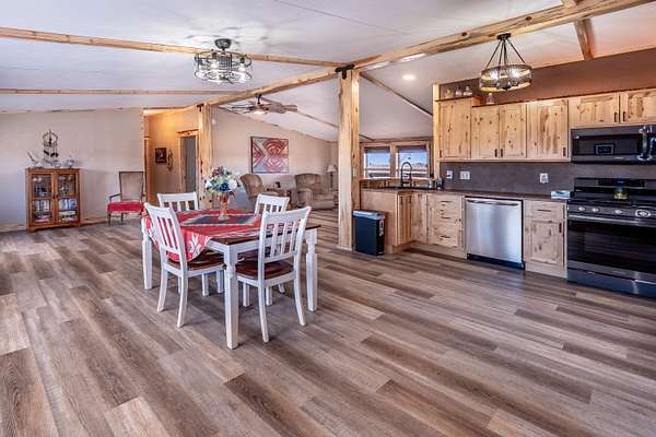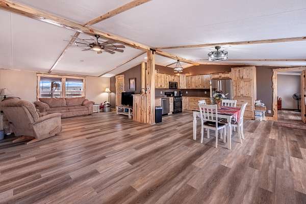 Discover the freedom of country living on 70+ acres with room to roam, raise animals, and enjoy wide-open skies. This property features a 2001 4-bedroom, 2-bath manufactured home with a durable ProPanel roof and interior has been completely updated. This offering comfort and functionality. Well-equipped for livestock and rural living, improvements include a 40x50 barn with horse stalls and corral panels, a swine pen, a 10x20 storage building, and a 20x25 metal shop with roll-up door. Property is fully fenced for livestock. Ideal for those looking to embrace the country lifestyle, this property is located in the Hoehne School District and includes a city water tap. Enjoy stunning views of Fishers Peak to the south and the Spanish Peaks to the west. Gorgeous sunsets! Maintained county roads provide easy year-round access.