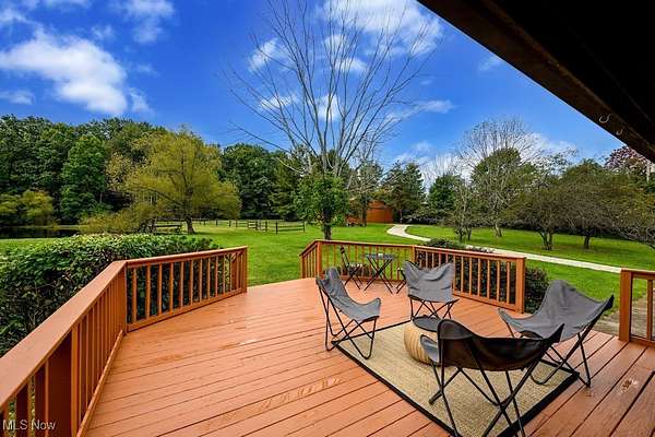 Stunning Architect Designed Custom Built 5 Bedrm Home (See videos attached) situated on just under 10 breathtaking acres in desirable Montville Township. A RARE OPPORTUNITY for a PRIVATE ESTATE close to Medina with great I-71/271/18 access w/PUBLIC WATER and NO CITY TAX! Two owners since new and meticulously maintained. This Custom Home offers * Great Room w/Cathedral Ceiling, Luxury Insert Fireplace *Custom solid wood cherry cabinets throughout *2 Story Foyer flanked by the clean lines of an open staircase *Living Rm/Morning Rm *Formal Dining Rm *Large Custom Eat-In Kitchen opens to the Great Rm *Butler's Pantry/Mudrm *1st FLR Laundry *Huge Private Primary Suite with adjoining Sun Rm, Bath with Garden Soaking Tub and Separate Shower and a Huge Walk-in Closet with Built IN *The 1st FLR is completed by an additional Bedroom and Guest Ba *Upstairs 3 additional Spacious Bedrms with Large Full Ba *Quality 2 x 6 Construction *Natural Gas Heat *Huge 2,260 sq. ft unfinished Basement fully plumbed, for work space, storage or finish for potential 5,557 sq. ft Living Space *Freshly Stained House/Barn *Roof ('17) *HWT ('17) *AC ('22) *Newer Garage Door/Andersen Exterior Doors *Washer/Dryer ('24) *Cooktop ('25) *Newer Furnace/High-end Stainless Steel Appliances *Beautiful Stocked Pond *Custom 40 x 42 Barn ('15) - w/Concrete Floor & Full Electric *Apple/Pear Orchard *Large Entertainment Deck *Split Rail Fencing *Full Property Access by maintained Walking Trail