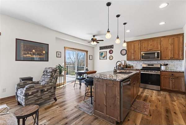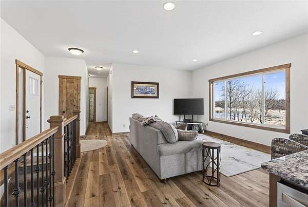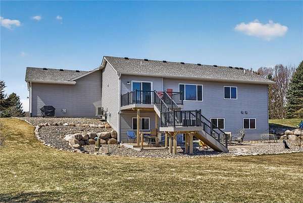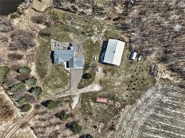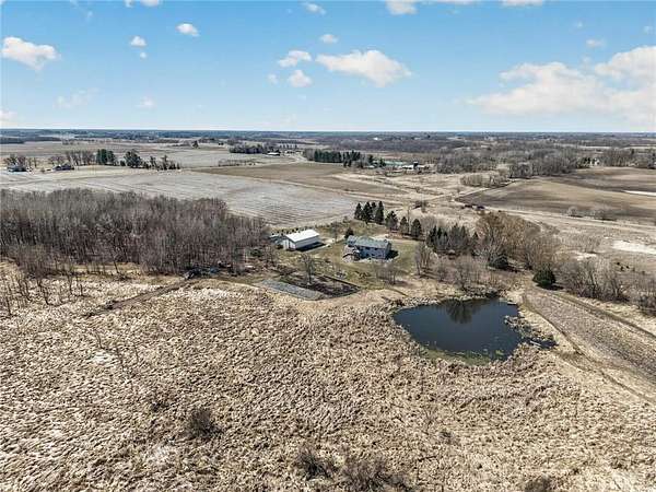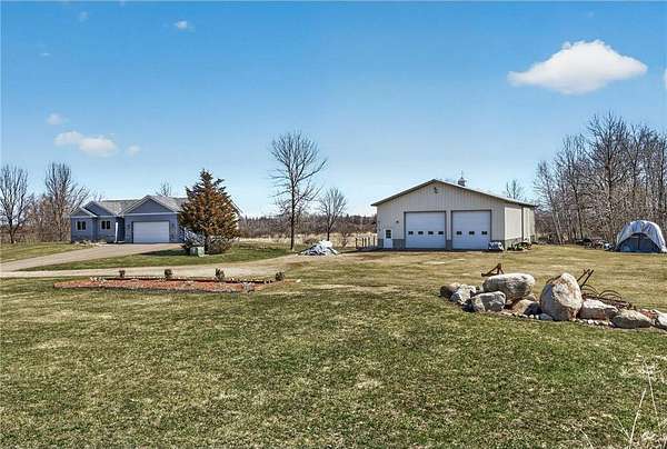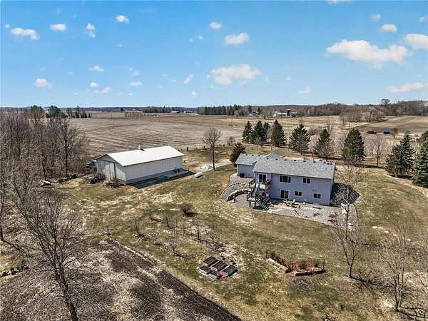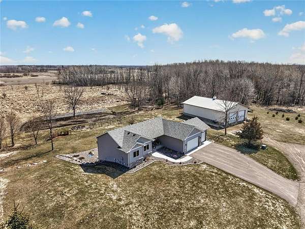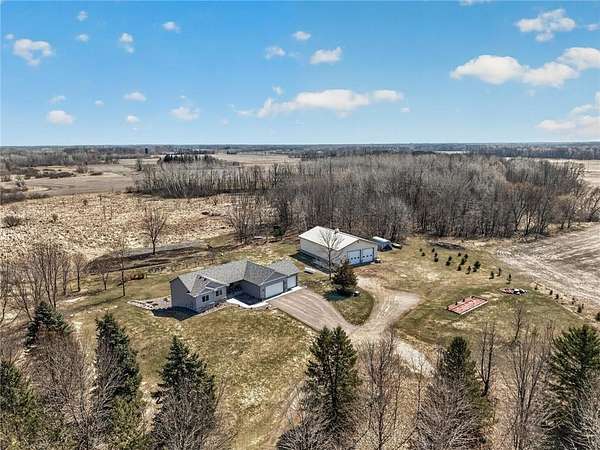 Welcome to your private country retreat! Built in 2020, this stunning 4-bedroom, 3-bath home sits on 20 beautiful acres, offering the perfect blend of modern living and peaceful seclusion. The property features a diverse landscape with wooded areas, lowland habitat, and a spacious grassy yard—ideal for outdoor enjoyment year-round. Nature lovers and outdoor enthusiasts will appreciate the abundant wildlife, including deer, turkey, and a variety of waterfowl. A scenic pond attracts ducks, geese, and even swans during the spring and fall migrations, creating a truly breathtaking setting right outside your door. The property includes a finished and heated 3-car attached garage, providing plenty of space for vehicles, tools, and equipment. In addition, a 40x60 unfinished pole barn offers endless potential for customization to suit your needs. Inside, you’ll find a thoughtfully designed home featuring beautiful knotty alder cabinetry, modern finishes, and spacious living areas. The walkout basement adds exceptional functionality and natural light, leading directly to a patio—perfect for relaxing or entertaining—while a deck above offers elevated views of the surrounding landscape.