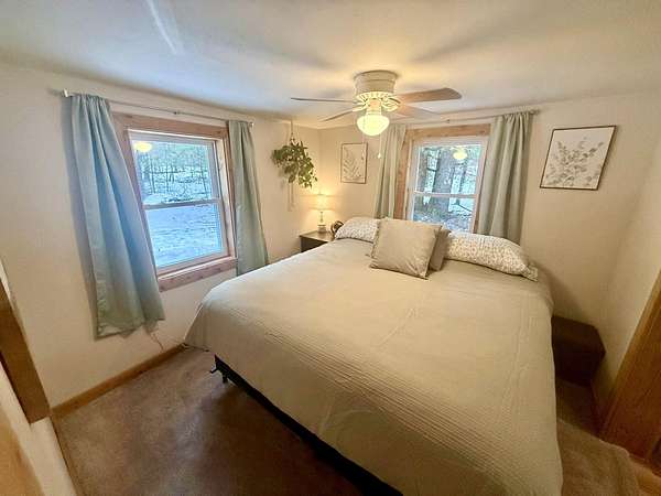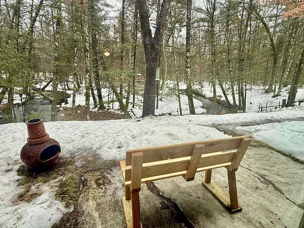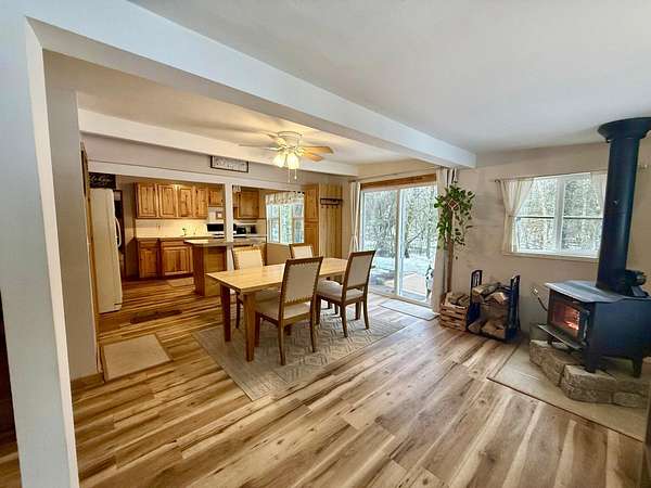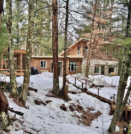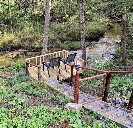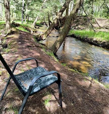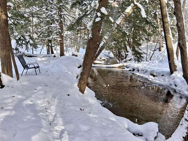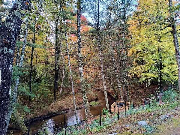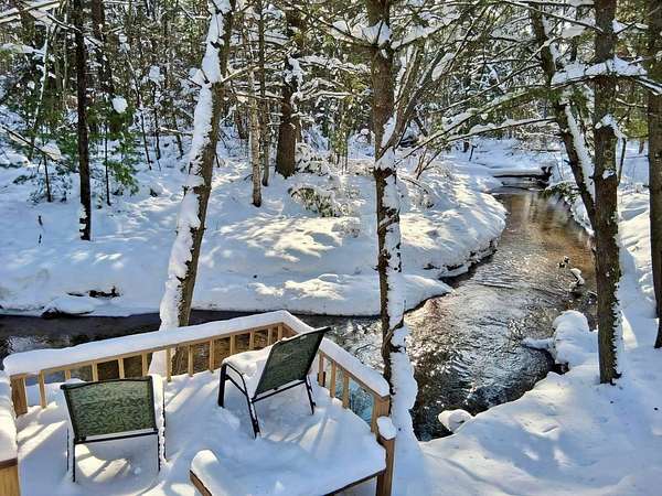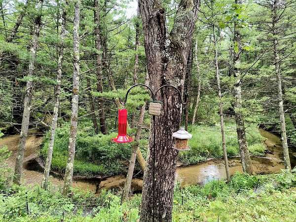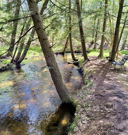 Ready to escape city life & urban sprawl? This non-replicable trophy property sits on 20 scenic acres adjacent to the Manistee National Forest with breathtaking frontage along the pristine Sanborn Creek, a DNR Class 1 trout stream where salmon & steelhead migrate upstream each season. Imagine watching the crystal clear water ripple & fish pass by from the comfort of your kitchen table & better yet, you can catch a 5 star dinner right from your backyard! For anglers, hunters, nature lovers, and those seeking true tranquility, this property offers something increasingly rare: a protected sanctuary where you can disconnect from urban life and reconnect with the outdoors. Directly adjoining protected federal land and national forest, the property offers a rare sense of security and permanence--no future development, just miles of preserved wilderness as your backyard. The home offers a warm, welcoming atmosphere with large windows that capture peaceful views of the surrounding landscaping. Outside, the land has been thoughtfully maintained with perfectly groomed hiking, snowshoe and cross-country ski trails winding through the property. Multiple outbuildings provide excellent space for workshops, equipment storage, creative studios, or recreational use. A 30-amp camper hookup allows guests to bring their RV and enjoy the property with you. A large fenced yard with safety gates provides peace of mind for children and pets, with controlled access leading toward the dock and creek. Deliveries are accessible year-round, utilities are low, and recent updates include a new HVAC system, new well, flooring updates, and a recently pumped and inspected septic tank. A year round home with the perfect view for the remote worker with high speed internet, a vacation home or even a vacation rental that could easily sleep 8 people for a memorable getaway! All this and just 40 minutes to gorgeous Ludington Beach!