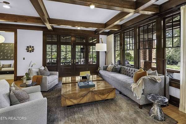 With all the charm and unique architecture of a 1920's Stickley designed home coupled with all the high-end amenities and current design choices of today, this incredible craftsman style home is like no other! Located on over 3 acres with beautiful grounds, covered porches, rich hardwoods, custom designer lighting and touches throughout, this West Knoxville estate is a statement home for the most discerning buyer. Off of the covered front porch which is perfect for outdoor living, the foyer welcomes family and guests and segues into the front living room with exposed beams, hardwoods, plenty of windows for natural light, and a fireplace flanked by banquet seating creating a cozy venue for more intimate conversations. The formal dining room - with access to the front covered porch - is spacious enough for a large dining table as well as a sideboard. A butler's pantry with sink, open shelving, wine fridge and built-in cabinetry with ample room to store your silver, platters and serving pieces is adjacent to the dining room. A beautiful white eat-in kitchen with a large island, high-end appliances, gas cooktop, pot-filler, plus ample counter space and storage sets the stage for creating memorable dinners for two or for many. A more informal living space at the back of the home with rich paneling and an architectural fireplace is a cozy and intimate place to start or end your day. Two sun-filled bedrooms with two baths complete this main level while the primary suite is located upstairs. This primary is large with ample room for seating and - with two series of a trio of windows - it also has plenty of natural light. The attached bath has dual sinks, walk-in shower, soaking tub and a walk-in closet with custom built-ins. Along with a private home office this suite is complete. The lower level of the home has the remaining bedroom along with additional living space and a secondary kitchen, wine cellar and wet bar setup perfect for hosting the best parties. The rear grounds are beautiful and stately with tiers for gardens, a bricked paved patio with room for outdoor entertaining, lush lawn space, a large stack stone fireplace for enjoying cool nights outdoors and a stone water feature and benches for enjoying your beautiful surroundings. Located within close proximity to downtown, public parks, dining and shopping, this rare gem is truly one of a kind.