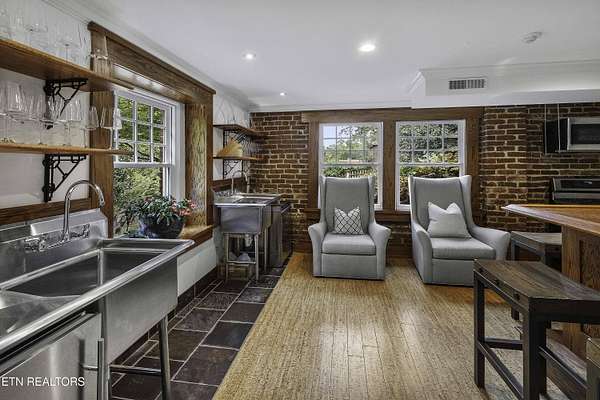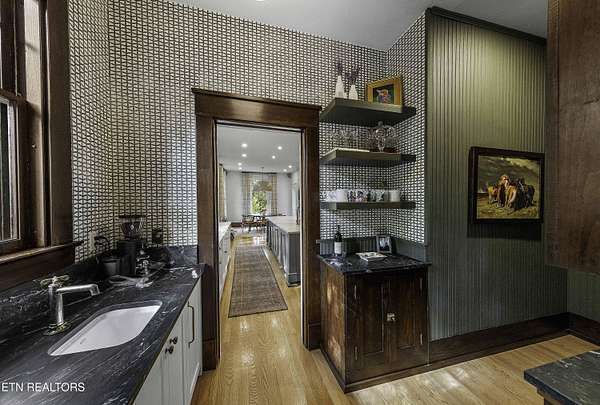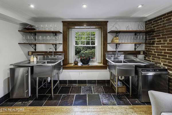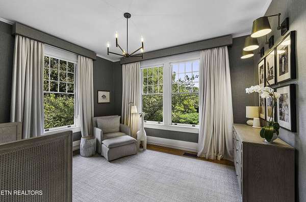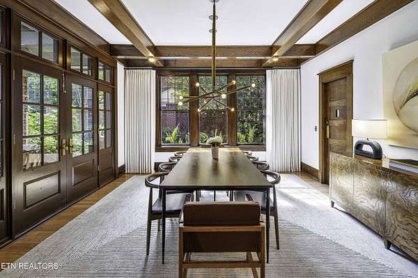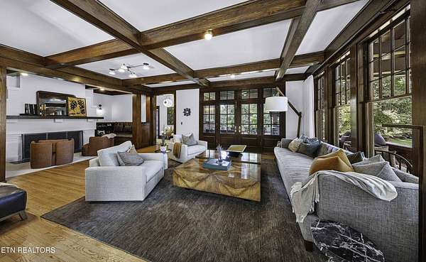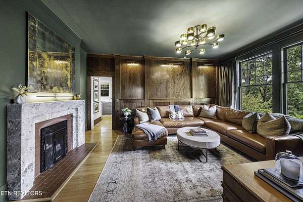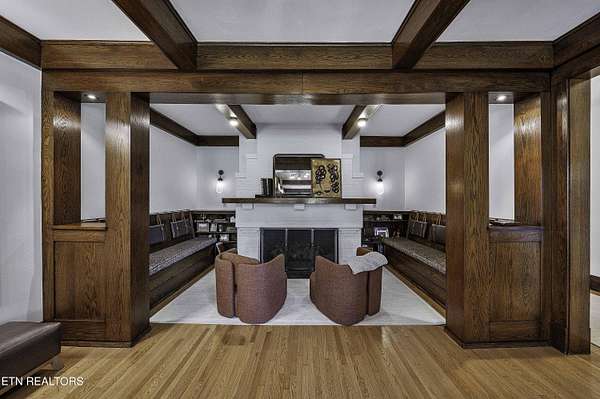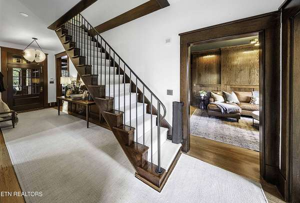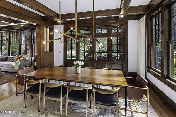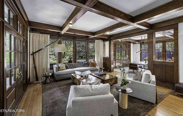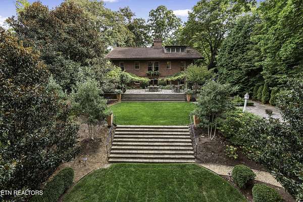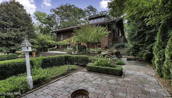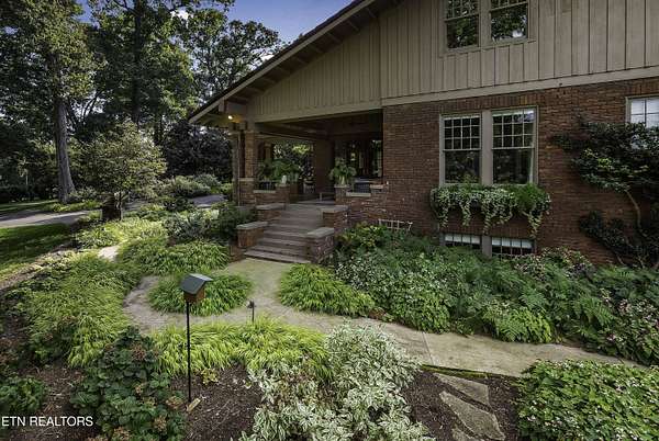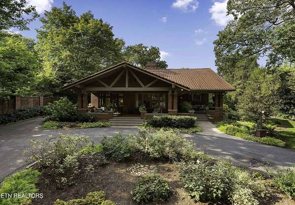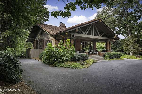 With all the charm and unique architecture of a 1920's Stickley designed home coupled with all the high-end amenities and current design choices of today, this incredible craftsman style home is like no other! Located on over 3 acres with beautiful grounds, covered porches, rich hardwoods, custom designer lighting and touches throughout, this West Knoxville estate is a statement home for the most discerning buyer. Off of the covered front porch which is perfect for outdoor living, the foyer welcomes family and guests and segues into the front living room with exposed beams, hardwoods, plenty of windows for natural light, and a fireplace flanked by banquet seating creating a cozy venue for more intimate conversations. The formal dining room - with access to the front covered porch - is spacious enough for a large dining table as well as a sideboard. A butler's pantry with sink, open shelving, wine fridge and built-in cabinetry with ample room to store your silver, platters and serving pieces is adjacent to the dining room. A beautiful white eat-in kitchen with a large island, high-end appliances, gas cooktop, pot-filler, plus ample counter space and storage sets the stage for creating memorable dinners for two or for many. A more informal living space at the back of the home with rich paneling and an architectural fireplace is a cozy and intimate place to start or end your day. Two sun-filled bedrooms with two baths complete this main level while the primary suite is located upstairs. This primary is large with ample room for seating and - with two series of a trio of windows - it also has plenty of natural light. The attached bath has dual sinks, walk-in shower, soaking tub and a walk-in closet with custom built-ins. Along with a private home office this suite is complete. The lower level of the home has the remaining bedroom along with additional living space and a secondary kitchen, wine cellar and wet bar setup perfect for hosting the best parties. The rear grounds are beautiful and stately with tiers for gardens, a bricked paved patio with room for outdoor entertaining, lush lawn space, a large stack stone fireplace for enjoying cool nights outdoors and a stone water feature and benches for enjoying your beautiful surroundings. Located within close proximity to downtown, public parks, dining and shopping, this rare gem is truly one of a kind.