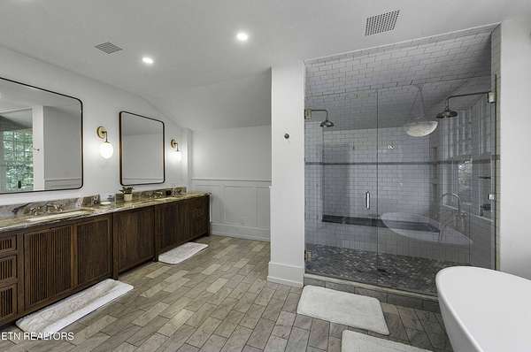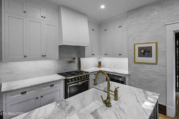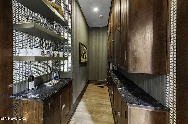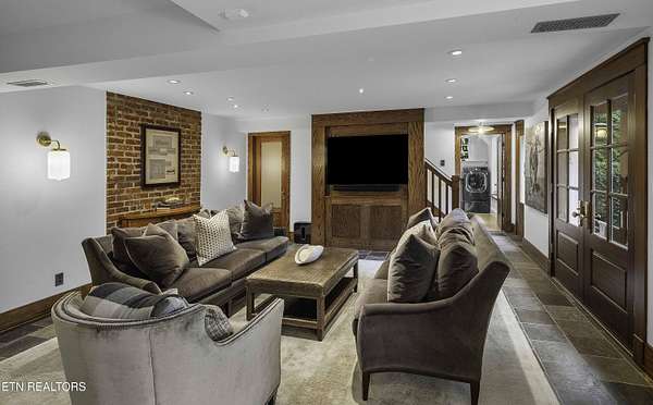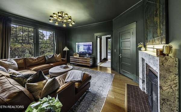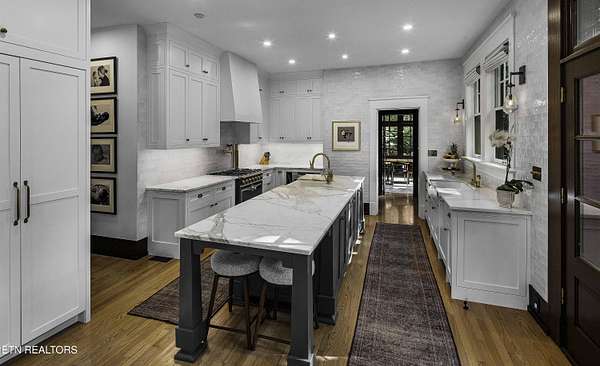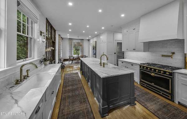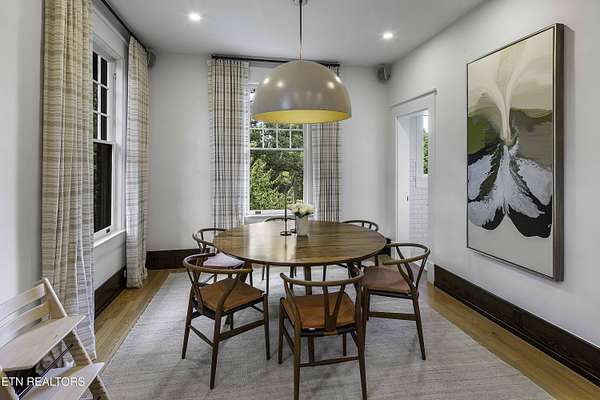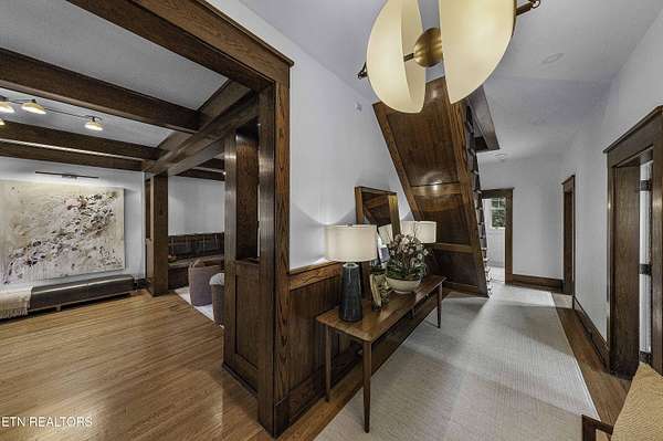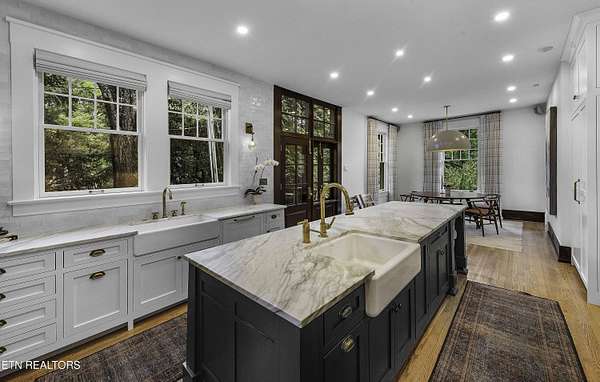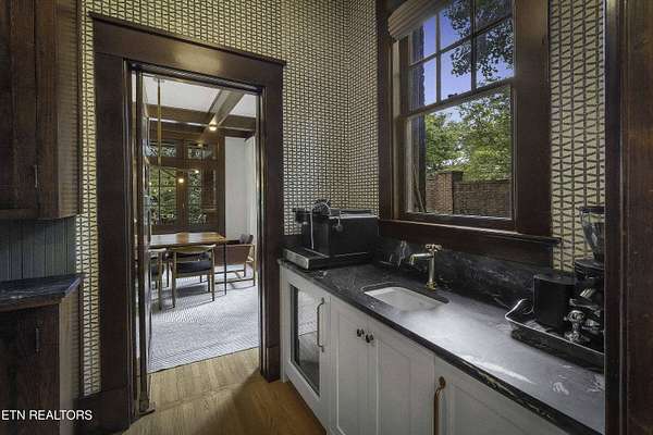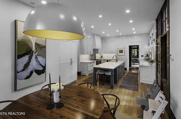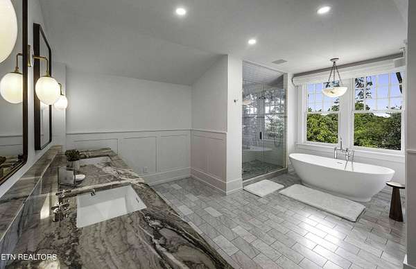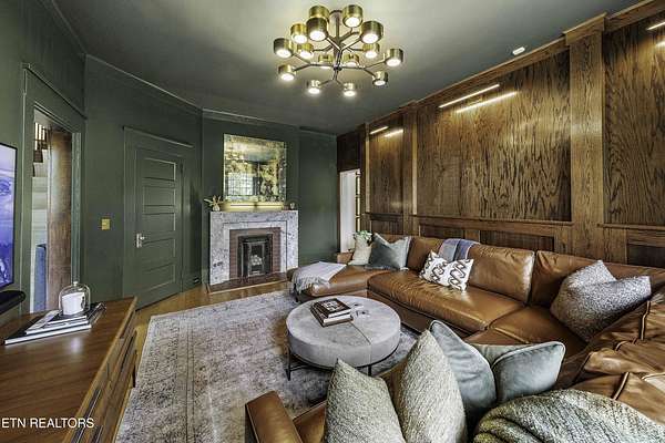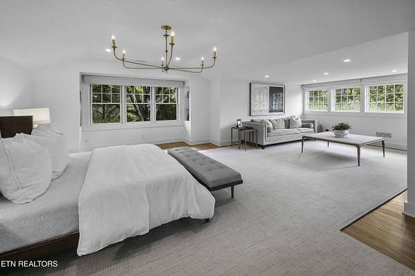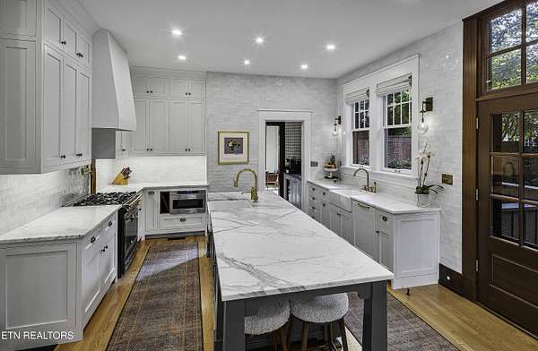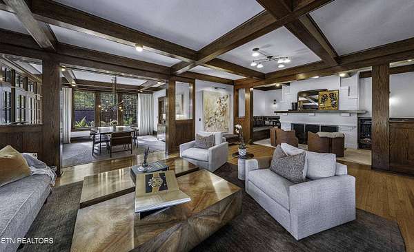 With all the charm and unique architecture of a 1920's Stickley designed home coupled with all the high-end amenities and current design choices of today, this incredible craftsman style home is like no other! Located on over 3 acres with beautiful grounds, covered porches, rich hardwoods, custom designer lighting and touches throughout, this West Knoxville estate is a statement home for the most discerning buyer. Off of the covered front porch which is perfect for outdoor living, the foyer welcomes family and guests and segues into the front living room with exposed beams, hardwoods, plenty of windows for natural light, and a fireplace flanked by banquet seating creating a cozy venue for more intimate conversations. The formal dining room - with access to the front covered porch - is spacious enough for a large dining table as well as a sideboard. A butler's pantry with sink, open shelving, wine fridge and built-in cabinetry with ample room to store your silver, platters and serving pieces is adjacent to the dining room. A beautiful white eat-in kitchen with a large island, high-end appliances, gas cooktop, pot-filler, plus ample counter space and storage sets the stage for creating memorable dinners for two or for many. A more informal living space at the back of the home with rich paneling and an architectural fireplace is a cozy and intimate place to start or end your day. Two sun-filled bedrooms with two baths complete this main level while the primary suite is located upstairs. This primary is large with ample room for seating and - with two series of a trio of windows - it also has plenty of natural light. The attached bath has dual sinks, walk-in shower, soaking tub and a walk-in closet with custom built-ins. Along with a private home office this suite is complete. The lower level of the home has the remaining bedroom along with additional living space and a secondary kitchen, wine cellar and wet bar setup perfect for hosting the best parties. The rear grounds are beautiful and stately with tiers for gardens, a bricked paved patio with room for outdoor entertaining, lush lawn space, a large stack stone fireplace for enjoying cool nights outdoors and a stone water feature and benches for enjoying your beautiful surroundings. Located within close proximity to downtown, public parks, dining and shopping, this rare gem is truly one of a kind.