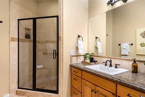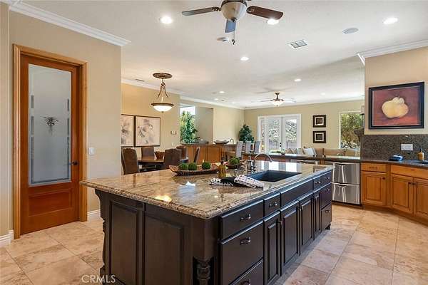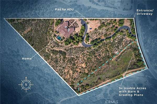 UTMOST PRIVACY & STUNNING VIEWS FROM THIS 10-ACRE SINGLE-STORY ESTATE IN LA CRESTA! Even has room for horses with submitted barn & arena plans! This single-story Showstopper is a “WOW” from the jump! From one of the best streets in La Cresta (Vista del Bosque means “View of the Forest”), the long private tree-lined driveway leads you to an automatic entry gate, accessing this magical estate. Notice the abundant use of natural stone (quarried from the property), as you head toward the custom iron front door and into the vaulted entry, where you will immediately be greeted, through a wall of glass, by the inviting resort-style pool and unobstructed panoramic mountain views. At dusk, as the sun sets over the Cleveland National Forest, the color palette goes from daylight to every imaginable shade of lavender. With views from every room in the house, the inside of this Italian-inspired home will not disappoint. Find 10–22-foot ceilings, all ensuite bedrooms, 8-ft solid doors, spacious great room, separate media room, wet bar, and a chef’s kitchen with 4 dishwasher drawers, & massive eat-around island. One of the two garages has been tastefully converted to a spacious bonus room, to be used how you like (currently is a game room). The grounds are very interesting with varying elevations, walk paths, gardening pavilion, RV parking pad and wood fencing. The pad adjacent the house is plenty large enough for an ADU or workshop, and the bottom 4 acres, already stubbed for power, has views of the forest and abundant flat land to create a dream horse or farm area. Views like this are one in a million. Add the immaculate, high-quality, dramatic, private estate, and you have a formula for a STUNNING FOREVER HOME! *SANTA ROSA PLATEAU: 5-acre minimum parcels (10-acre minimum. in SR West), just minutes to schools, restaurants, hospitals, grocery stores, 15 Fwy & Temecula Wine Country. Enjoy this peaceful ranch community w/no commercial businesses, robust social activities, miles of private community trails & 1000s of acres of Ecological Reserve…All less than 1.5 hours from LA, SD, OC, Palm Springs & Big Bear. Discover the country, yet convenient, lifestyle of La Cresta, Tenaja & the Communities of the Santa Rosa Plateau!