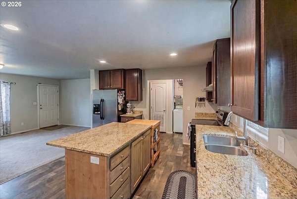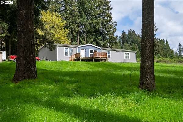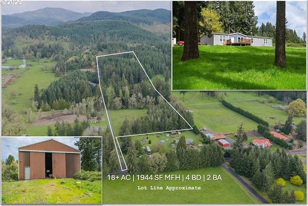 Est $3,206/moOwn 18+ acres of peaceful countryside with a 38x46 shop, mature timber, pasture, & a private pond. 2020 MFH offers 1,944 SF, 4 bedrooms, 2 full baths with a desirable split floor plan. Primary suite is on one side, while three guest bedrooms & a full bath sit on the opposite side. An open kitchen features stainless steel appliances & a large granite island, perfect for gathering. Shop has septic connection. Plenty of space for animals, recreation, or relaxing. Home & property are sold AS IS. Minutes to I5!