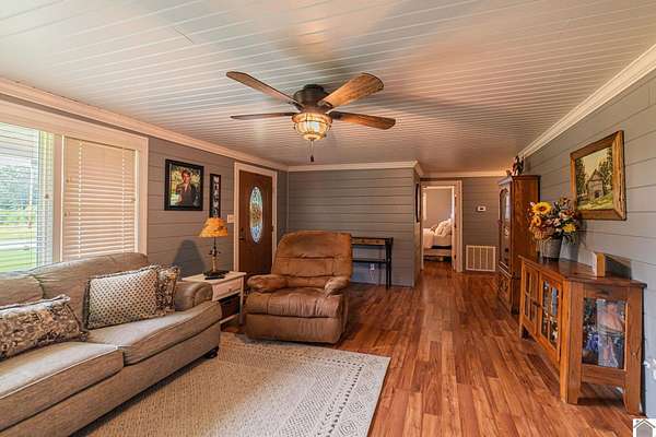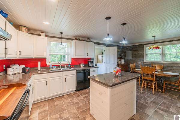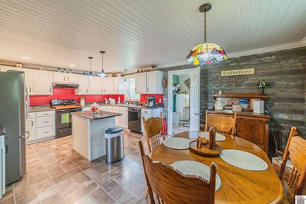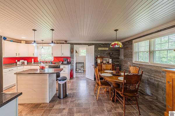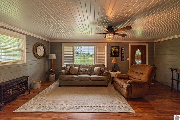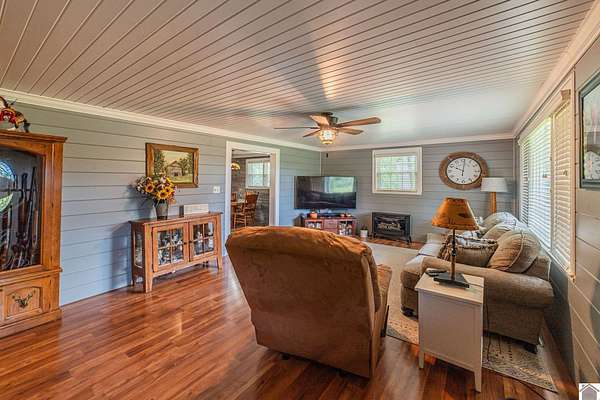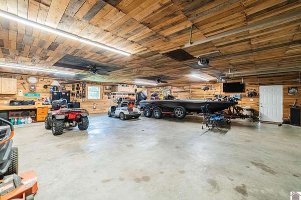 Welcome to your next chapter--just minutes from Kentucky Lake & the beloved Dinner Bell Restaurant. This well-cared-for 2-bedroom, 2 bath brick home offers 1,330 square feet of inviting living space with charming wood tongue-and-groove ceilings adding both warmth & texture throughout. Step inside to find a fully updated interior. The backyard offers a park-like setting, complete with mature plum & pear trees that just might make you the envy of the neighborhood when fruit season rolls around. But let's talk about the real showstopper--a 35 x 35 detached garage, affectionately dubbed the "Garage Mahal." It's insulated, features wood-paneled walls, and includes attic storage--a space that would make any hobbyist, gearhead, or weekend warrior smile. Recent improvements provide peace of mind, including a new heating and cooling system installed in 2023 & a new roof in June 2025. Launch your boat from nearby Jonathan Creek, Sportsman's, or Town and Country Marinas & live the Lake Life!