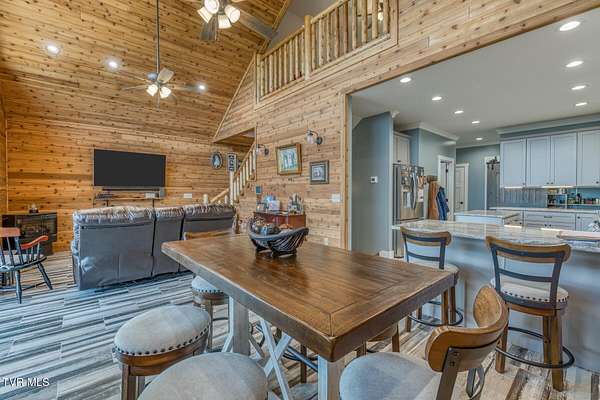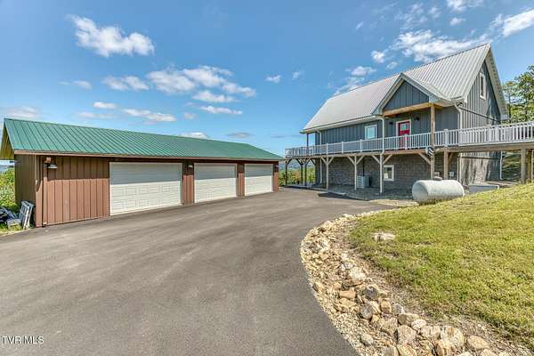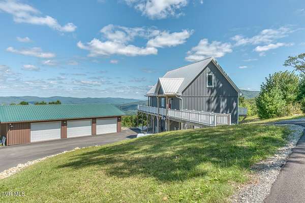 Welcome to your mountain escape above peaceful Shady Valley. Sitting on just under 8 acres, this remarkable property offers sweeping long-range mountain views. This home has a setting that feels worlds away while still being close to some of the region's best outdoor destinations. Built in 2023, this custom home offers 3,024 sqft of well-designed living space. The main living area features high vaulted ceilings with warm wood finishes and an impressive wall of windows that fills the home with natural light and showcases the gorgeous mountain views. A spacious wraparound deck provides the perfect place to relax and enjoy quiet mornings overlooking the valley. The kitchen features granite countertops, stainless steel appliances, a large island, and a pantry for additional storage. Upstairs, a loft provides a half bath that is ready to be converted into a full bathroom and a room currently used for storage that could easily be an additional bedroom. The lower level has a comfortable den, bedroom, full bathroom, workout area, and a laundry room. Outside, a three-bay garage with ample room for vehicles and equipment. The garage has a full bathroom and laundry area complete with washer and dryer. In addition, there's a RV garage that can accommodate RVs up to 45 feet. For added value, the refrigerator, washer and dryer, all televisions, the bed in the primary bedroom, and the bed on the lower level will remain with the property, along with a permanent Generac propane-powered generator. There is a voluntary HOA fee of $50 per month to maintain the electricity for the security gate and the roads and common areas through the neighborhood. Located in the heart of beautiful Shady Valley, this area is known for its mountain scenery and quiet country atmosphere. Enjoy the nearby Appalachian Trail, miles of some of the most scenic landscapes in the eastern United States. The Virginia Creeper Trail is also just a 30 minute drive away and offers one of the most popular biking and walking trails in the region. Just 16 minutes from the property is Blue Hole Falls, a well-known local swimming spot featuring crystal-clear mountain water and natural rock formations. The property is also conveniently located near Doe Mountain Recreation Area, Watauga Lake, South Holston Lake, and the ski resorts of North Carolina. Don't miss out on this one of a kind mountain property with unforgettable views!