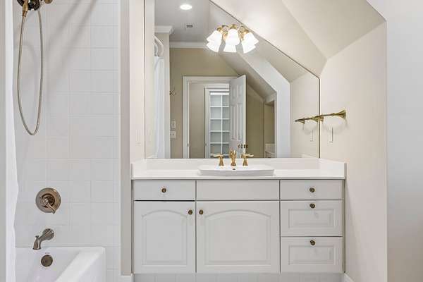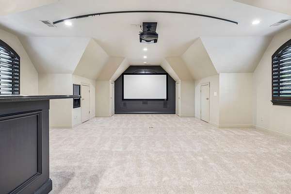 Upstairs, each bedroom offers its own en-suite bath and walk-in closet, connected by a striking catwalk overlooking the great room. A flex space, along with a fully equipped media and bonus room with surround sound and wet bar, creates the perfect balance of work and play.