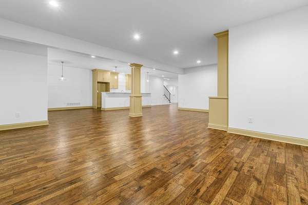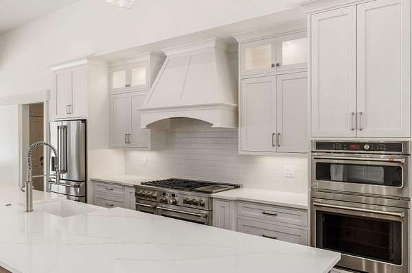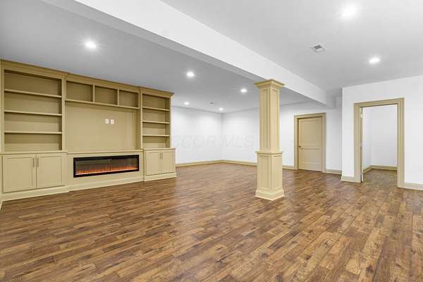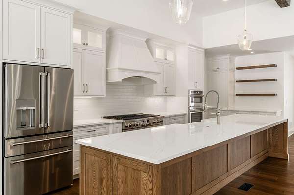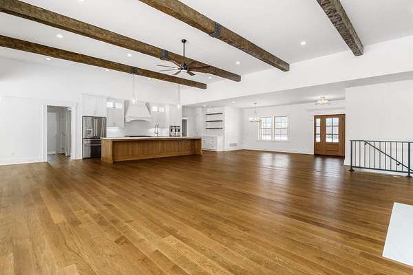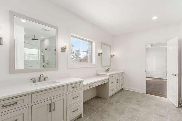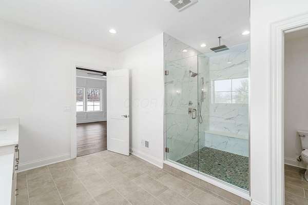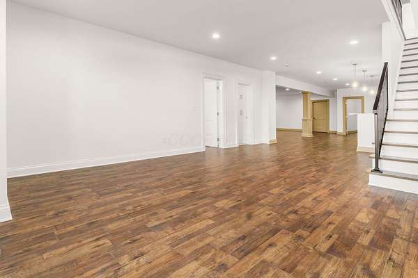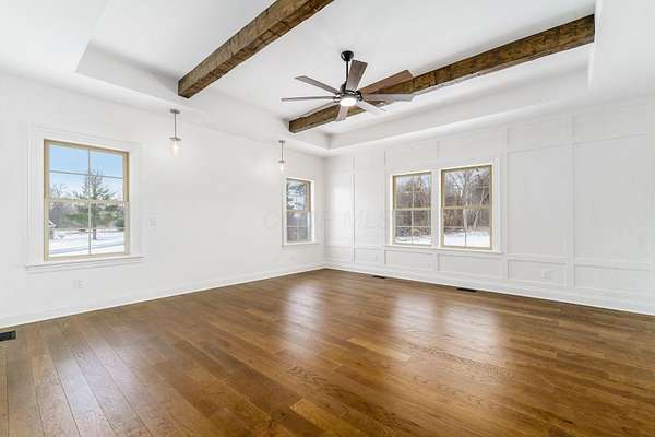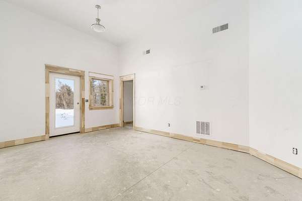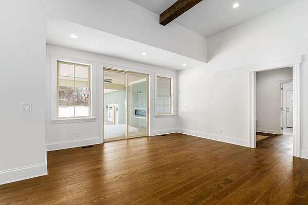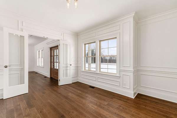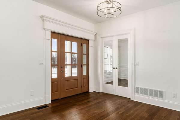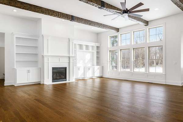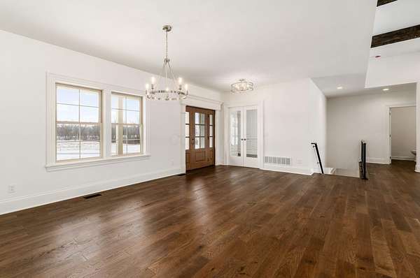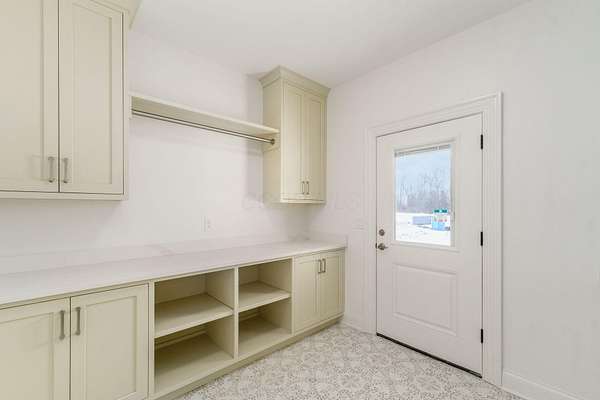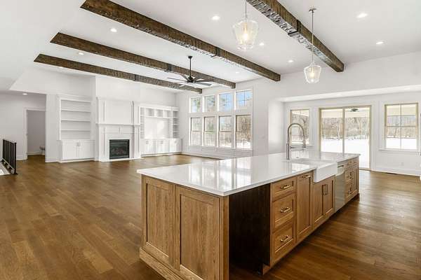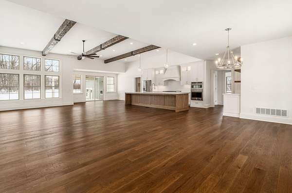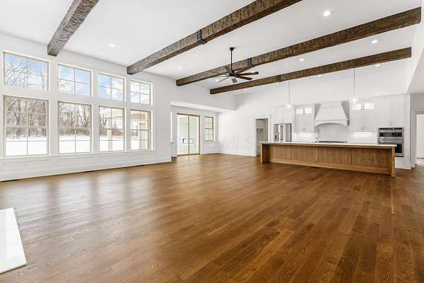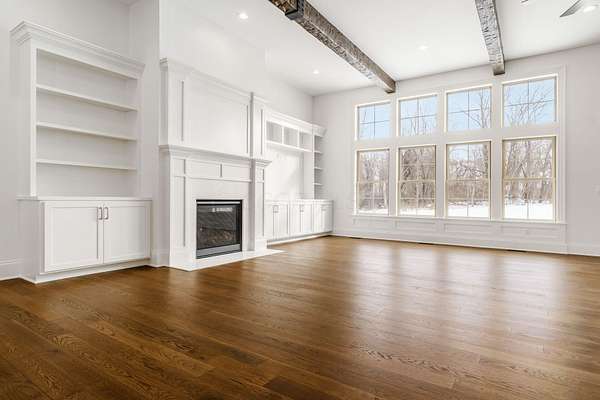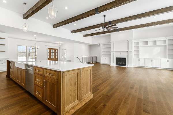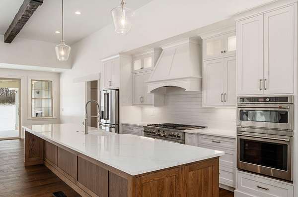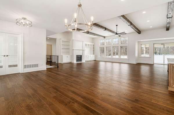 Sprawling custom ranch situated on 3 acres, tucked away on a quiet cul-de-sac with unmatched quality throughout. Offering nearly 5,800 square feet of luxurious living space with four bedrooms and five-and-a-half baths. An expansive garage accommodates up to seven vehicles and includes a finished living area with a full bath and direct backyard access-ideal for a future pool house or man cave-along with a heated section perfect for a golf simulator. Garage includes stairwell directly to the basement. The spacious kitchen features custom Amish cabinetry and a large island connecting to the messy kitchen, morning room, and great room. The great room includes a 12-foot beamed ceiling, wall of windows, fireplace, and built-in shelving. Additional highlights on the 1st floor include a formal dining room, den with custom built-ins, laundry and mudroom. Custom woodwork throughout, including all closets. The finished lower level offers a bedroom with full bath, two expansive living spaces with custom built-ins and a kitchen, a den, and a potential exercise room enclosed by glass wall and doors. 2 egress windows in the basement. Enjoy outdoor living on the covered back porch with an electric fireplace. A truly one-of-a-kind property with exceptional workmanship throughout, where no detail has been overlooked.