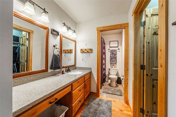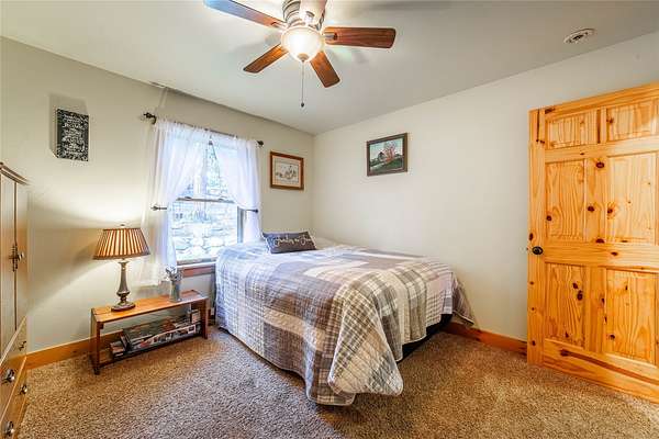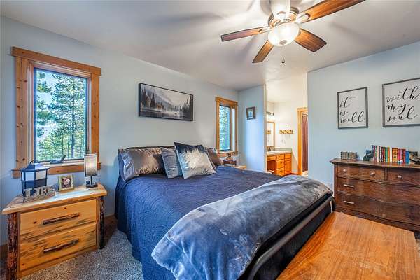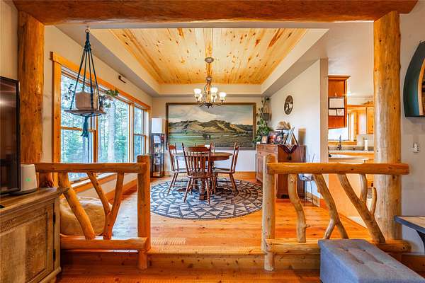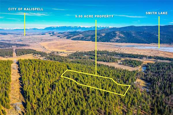 Set on nearly 10 acres of peaceful countryside, this thoughtfully crafted ranch-style home offers privacy, quality, and convenience just 15 minutes from downtown Kalispell. Large south-facing windows fill the home with natural light and showcase beautiful mountain views with glimpses of Smith Lake. Inside, circular-sawn wood floors add warmth and character throughout the living and dining areas and primary bathroom, while cathedral wood ceilings and a propane fireplace with stunning rock surround create a welcoming focal point. The home features three spacious bedrooms, two full bathrooms, generous closets, and a low-maintenance design built with quality materials inside and out. Step onto the back deck to enjoy a landscaped, south-facing yard with young fruit trees, abundant wildlife, and daily bird activity. Quiet, private, and relaxing, this neighborhood offers friendly neighbors and the rare balance of seclusion with close proximity to town.