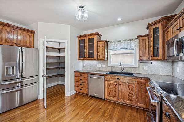 - Built-In Electric Oven, Dishwasher, Disposal, Electric Range, Microwave, Refrigerator, Stainless Steel Appliance(s)
