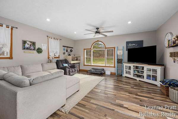Peace and country paradise is waiting for new owners in this beautifully updated 4-bedroom, 3-bathroom ranch home in Delton. Sitting on 5 acres with two outbuildings (corn crib style and pole barn), this serene and private property is an outdoorsman's dream with an all-inclusive sample of pond, wooded section and tillable land- the best of all that nature can offer! Three main level bedrooms & deluxe lower-level owner's suite with ensuite and walk in closet. Recent home updates include new roof in 2023, new back deck and gazebo in 2024, new flooring and paint, remodeled and expanded kitchen pantry, newer water heater and kitchen appliances (2022). Cozy woodstove in living room stays with home and compliments propane furnace for efficient additional heating source. Hot tub and deck gazebo to stay with home, ready for buyer enjoyment! Sale of home to be contingent upon purchase of home known to seller and seller's broker and is past inspection period. Schedule your private tour today