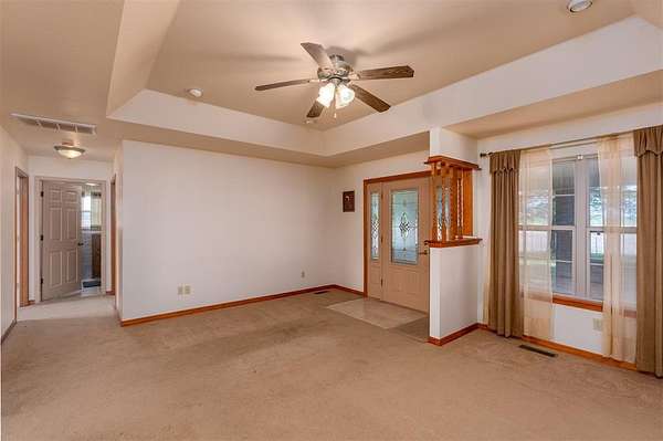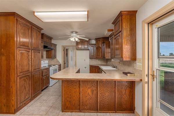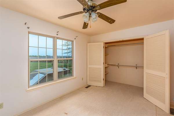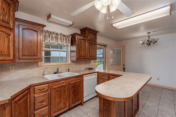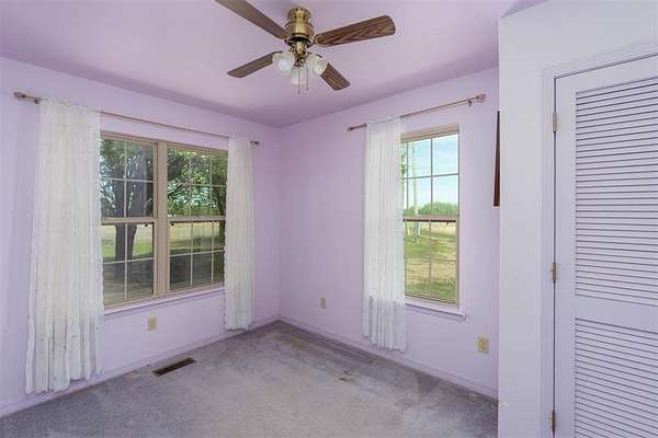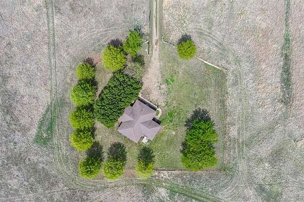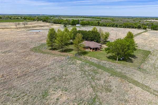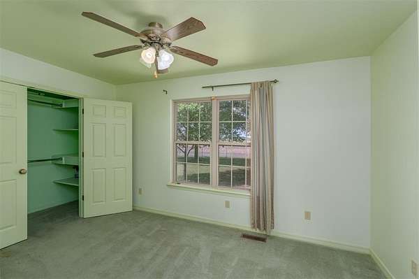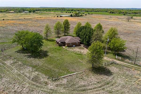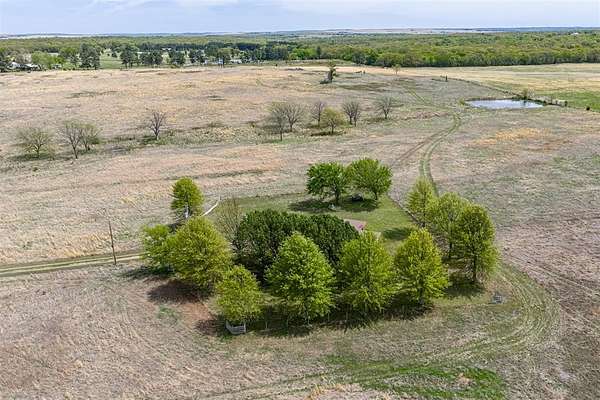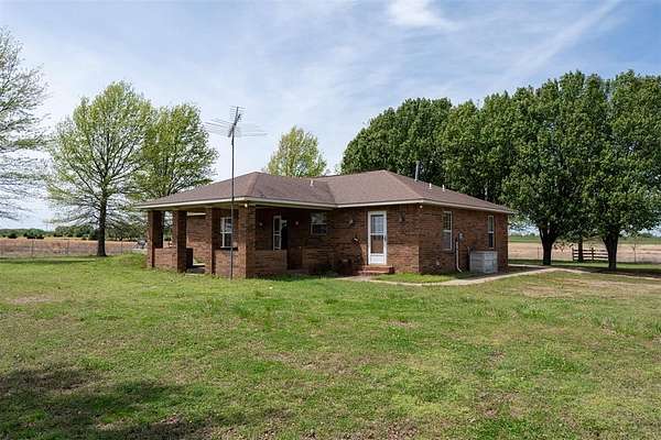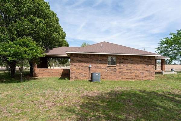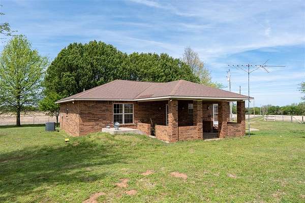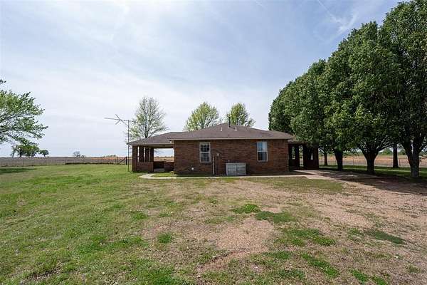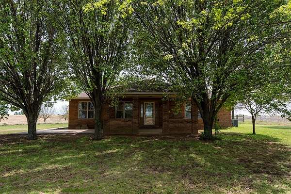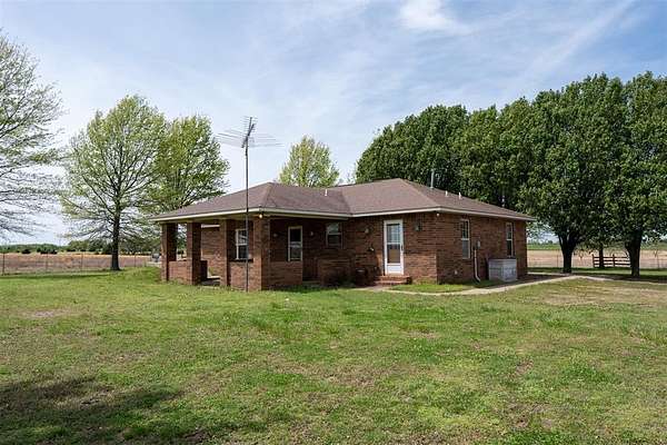 Peaceful 80-Acre Ranch with Brick Home, Scenic Views & Prime Pasture-Welcome to your own slice of Oklahoma countryside-Fully-Fenced, 80 acres of well-maintained, pastureland with just the right blend of open grazing and mature shade trees. This corner property offers both paved road and county road frontage, making it easily accessible and commuter-friendly with quick access to Interstate 40. Centrally located between Tulsa and Oklahoma City, it's an ideal spot for rural living with city convenience. The one-owner, ranch-style brick home features 3 bedrooms and 2 bathrooms, thoughtfully placed in the center of the property for added seclusion. A long, scenic private drive leads to the home, home is surrounded by mature trees and fenced yard space. Relax on the large covered back porch while enjoying peaceful views of your own land, or take comfort knowing there's a storm cellar just steps from the back door. A front carport adds convenient covered parking. Inside, you'll find solid wood cabinetry, a spacious utility room with its own bathroom, and an abundance of storage throughout. This well-built home offers lasting value and comfortable living in a extremely quiet setting. The land is ideal for livestock or hay production, with two ponds providing water sources for animals or recreation. There's also an old home site on the property currently used for storage-utilities are present, though their current condition is unknown, offering potential for future use. Whether you're looking for a working ranch, a hobby farm, or a peaceful rural retreat, this property delivers it all in a quiet, serene location. Owner states 2 water wells on property-condition is unknown. There are quite a few mature pecan trees on east side of property. Home is supplied with rural water.