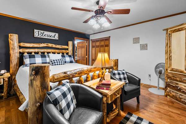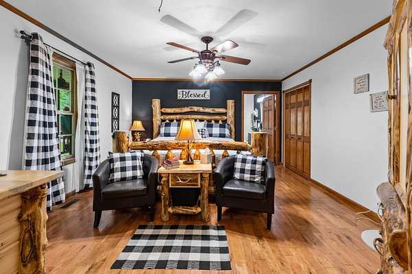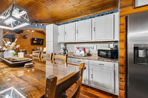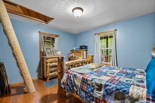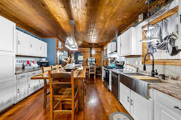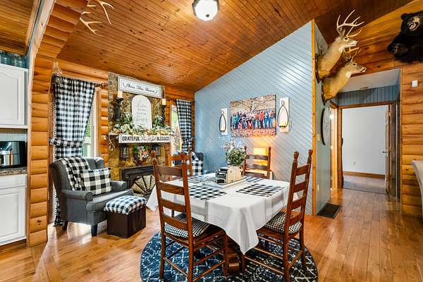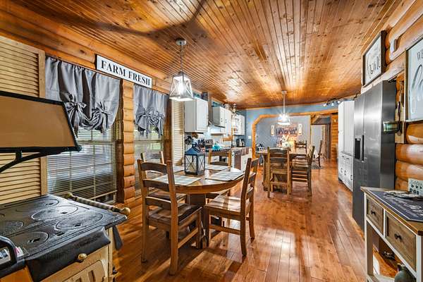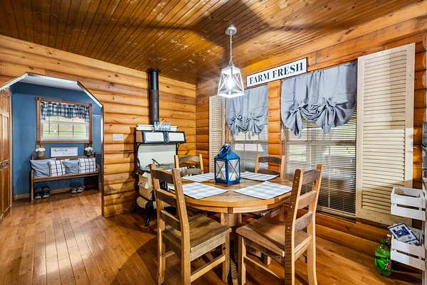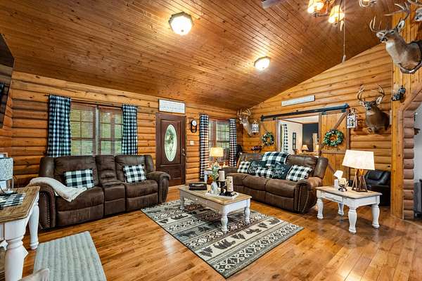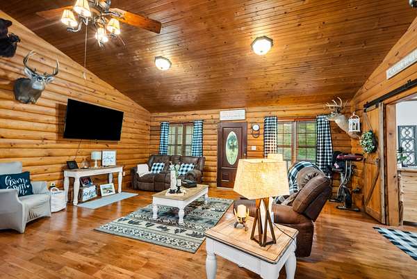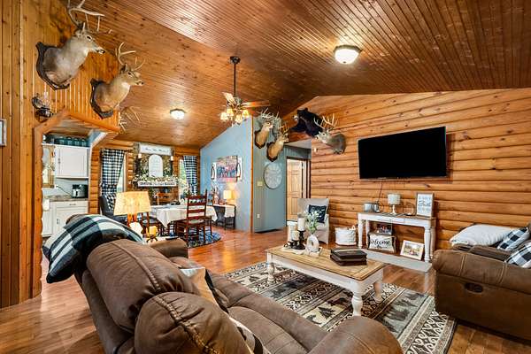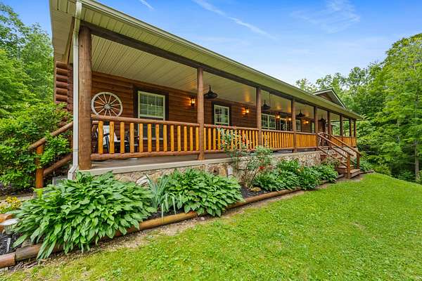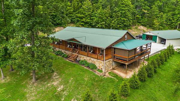 PRICE REDUCED!! Take a look at this beautiful home on acreage, located in Lewis County, Kentucky! Nestled in a secluded setting, this charming 3-bedroom, 2-bathroom log-sided home offers approximately 1,800 sq. ft. of rustic elegance. Inside, you'll find rich hardwood floors throughout, adding warmth and character. The master suite features plenty of space to meet all your needs. Step outside to discover a gorgeous, fully stocked fishing pond -- perfect for relaxing afternoons or weekend gatherings. A true highlight of the property is the front porch, which offers scenic views of the beautifully manicured pond. The property spans approximately 5 +/- acres, providing ample space for outdoor activities, gardening, or simply enjoying the peaceful countryside. A metal shop building with concrete floors stands ready for your projects or storage needs. This property seamlessly blends rustic charm with modern amenities, offering a serene and private sanctuary. Don't miss the opportunity to make this unique home your own! Please note: the mobile home currently on the property will be removed after closing. Boundaries are approximate; the seller will provide a survey prior to closing. All showings are by appointment only. If you would like more information or would like to schedule a private viewing, please contact Isaac Singer at (606) 748-6458 .