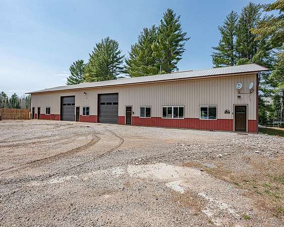 Storage AND living space/All in ONE! Wait till you see this one of a kind property with a number of possibilities-a permanent home- rental home while you build your dream home-storage space for snowmobiles, ATV's, UTV's and the like-rent it as a duplex-use it as commercial property...and the list goes on. On one end of the building there is 1683 sq ft of finished space-a 3 bedroom, 1 bath home with open concept kitchen, dining and living area with high end rustic finishes and a gas fireplace. On the other side there is 1015 sq ft of finished area including a kitchen/living room area, 2 bedrooms and full bath. In the middle of this 4560 sq ft building there are 2 garage spaces for additional storage. Sitting on 4.63 acres and about 6 miles from Eagle River, you are close to many area lakes, ATV and snowmobile trails! Don't let this opportunity pass you by!