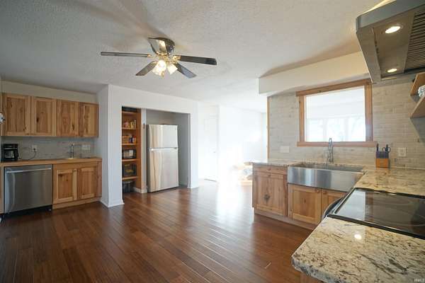 Move in ready and well maintained 4 bedroom, 2 bathroom, 2708 sq. ft. home with a walkout partial basement, 2 car attached garage, and a 40' x 30' pole barn with concrete floor, wood burning stove, 100 amp electric, walk-in door, 10' x 9' barndoor and a 12' x 8' overhead door, all on 5 partially wooded acres just loaded with possibilities for the new owner. The 22' x 10' front deck brings you into the front door that opens into dining room that connects to the fully appointed and recently updated kitchen with granite countertops, custom hickory cabinets and a coffee bar with a reclaimed bowling alley countertop that add to the craftsman interior design of this split bedroom floorplan. The large living room with gas log fireplace, skylights, plenty of natural light, access to the side patio is connected to the kitchen along along with the entrance into the primary bedroom suite with access to the 16' x 12' deck overlooking the large back and side yard. 3 additional generous sized bedrooms and the 2nd full bathroom complete the main level. The walkout lower levels features a large family room, laundry room, and utility room. K Connect fiber internet is connected. "NEWS" include: 2020 - Kitchen remodel, Bamboo Flooring, Hi Efficient GFA furnace and A/C; 2019 - Tankless Gas Water Heater; 2017 - Decks; 2008 - Roof. This property has accepted an offer prior to being entered into the MLS.