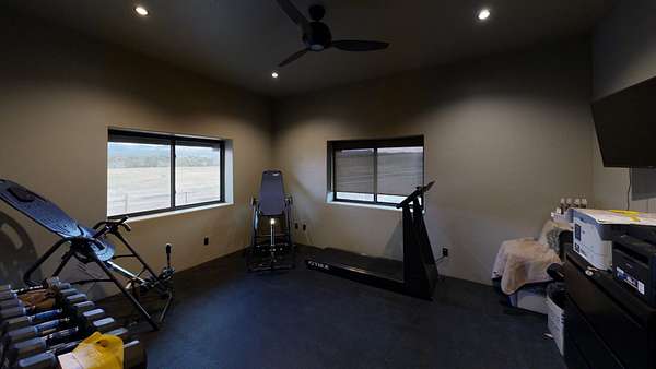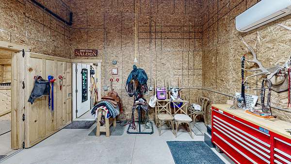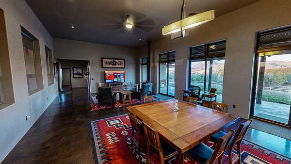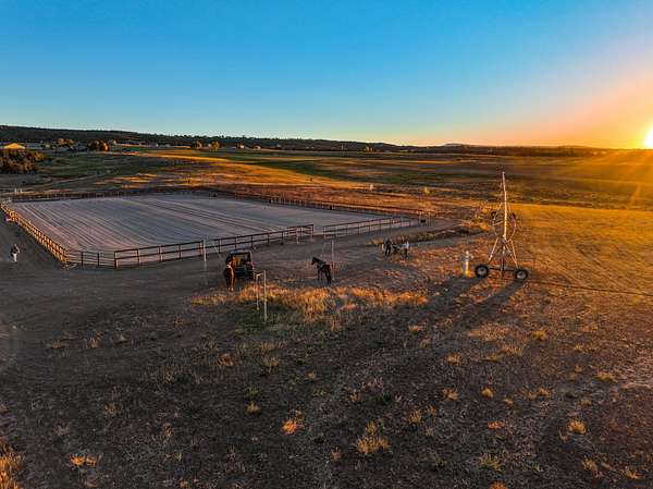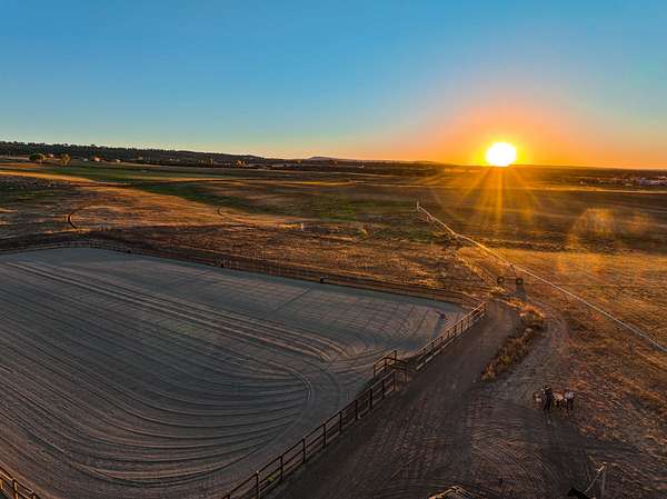- Equestrian & Improvements: 300x150 ft riding arena, four patience poles, barn with four stalls (each with auto waterers and feeders), and a 25x40 ft shop with equipment shed and RV hookups.