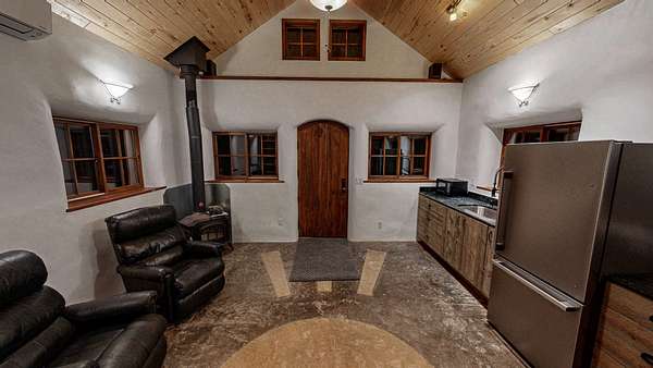 - Additional Structures: One-bedroom, one-bath cabin with loft suitable for guests or short-term rentals, plus a geodesic greenhouse.
