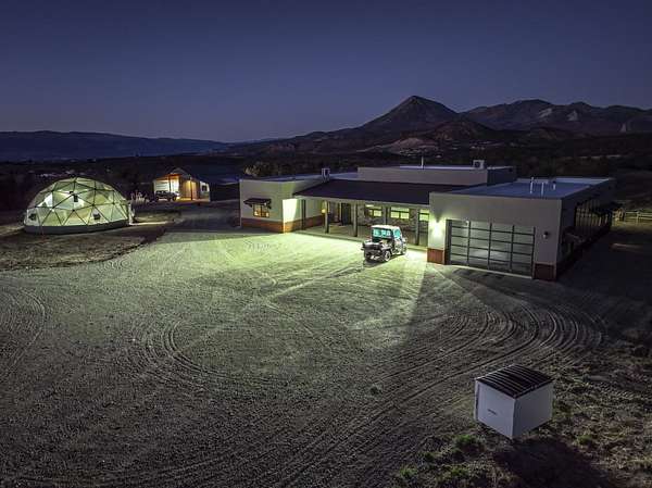 Elk Crest Ranch embodies the Colorado mountain lifestyle through its combination of natural beauty with comfortable living and self-sustainability. The modern home on this property rests on a sloping terrain which provides unobstructed views of the West Elk Range, open meadows, and mature trees.
