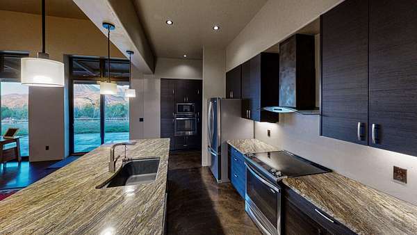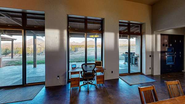 The property combines functional design elements with energy-efficient systems and elegant lines to create a space that serves both purpose and style. The ranch provides complete equestrian facilities allowing everything to run smoothly through its full-size riding arena and barn with automated systems and workshop facilities. There are also the added benefits of a greenhouse and two pivots that supply water for various agricultural and lifestyle activities.