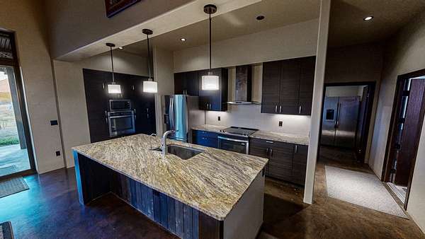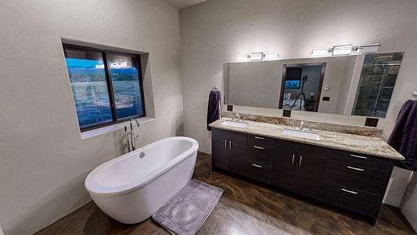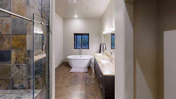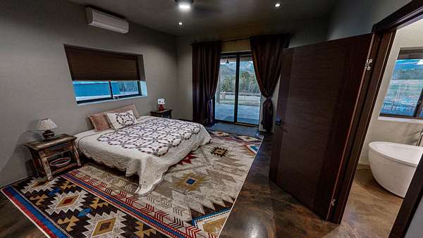 - Home: Modern single-level home with in-floor radiant heat, concrete floors, Daikin mini-split systems in each bedroom, and spacious covered porches.