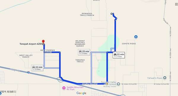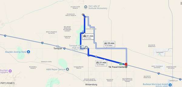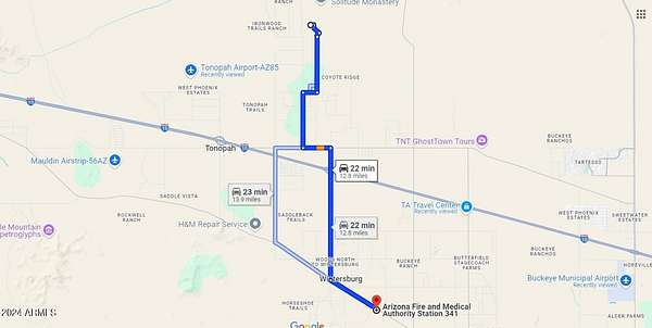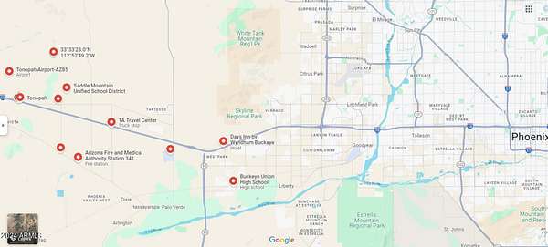 Heading W on I-10 to N Wintersburg Rd, take exit 98 from I-10 W. Continue on N Wintersburg Rd and take W Indian School Rd, N 387th Ave and N 383rd Ave to N 384th Dr.
