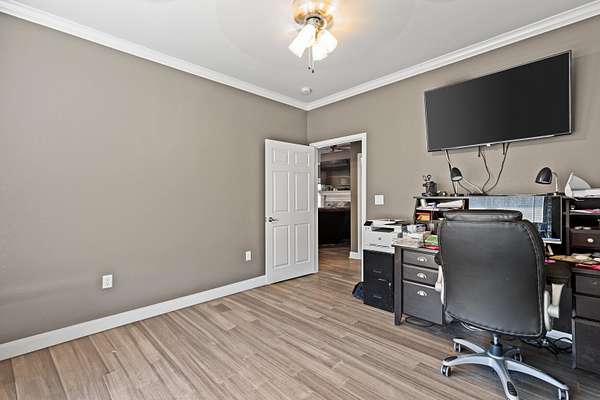 - Blinds, High Ceilings, Laminate Flooring, Shades/Blinds, Vinyl Flooring