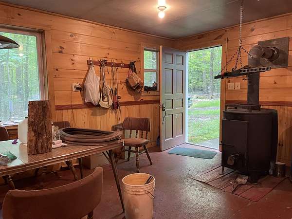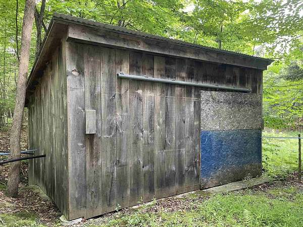 WELCOME TO 385 FERRIS RD, NICHOLVILLE - INCOME POTENTIAL! This 52.10 property has sugar house with a bunk room attached to the building with electricity, a kitchen area, dining area, and bedroom area all in one large room and it sits back in the woods. There is a storage building for firewood attached and units that hold a good amount of firewood that can be brought over with a pallet jack to easily add more wood to the fire. There are 3 pump houses with storage tanks. There is an outhouse and another storage building in the woods for a tractor and other equipment. There is a large garage with a tall ceiling for storing or working on your equipment that sits back off the road. There is a clearing next to that garage that would be a wonderful spot to build your dream home! Most of the items will convey with the property. You will enjoy walking or riding on the trails through the beautiful woods. You can drive a truck or SUV to the sugar house as well. This lovely property has great potential for income! Schedule your showing soon!