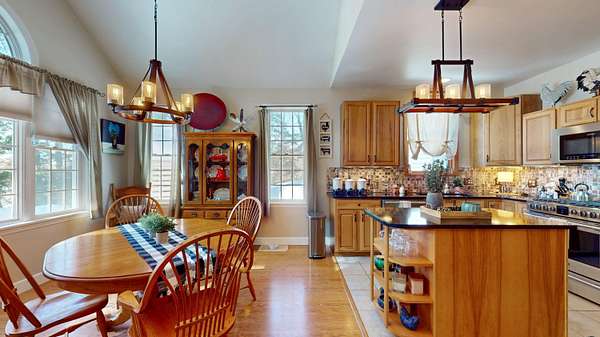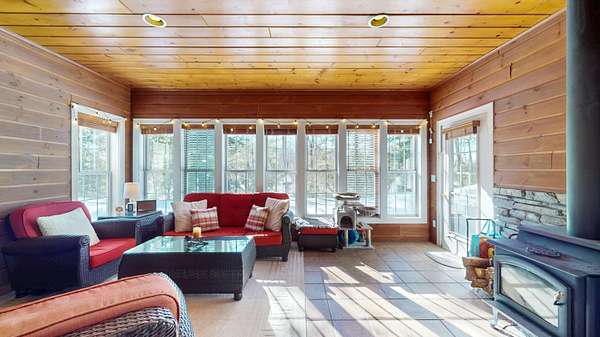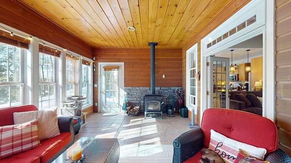 Embrace the tranquility of waterfront living on the Little Salmon River with 163 feet of river frontage, perfect for wildlife enthusiasts and avid fishermen. This beautifully updated home features a modern kitchen with quartz countertops, stainless steel appliances, a new tiled backsplash, under-mount sink, updated lighting, and fresh paint. The inviting living room boasts a wood-burning fireplace, built-in bookshelves, a cathedral ceiling, and luxury vinyl flooring. Enjoy year-round river views from the sunroom, complete with a cozy woodstove. The foyer welcomes you with tile flooring and a new accent wall. Throughout the home, you'll find heated floors-including in the garage-ceiling fans, recessed lighting, and abundant natural light. The primary suite is a serene retreat with dual closets, high ceilings, and large windows overlooking the river. The primary bath offers tiled flooring, a shower and a relaxing jetted tub. Additional features include a new roof, beautifully landscaped grounds, a riverside setting, a Kohler propane standby generator, a security system and a heated workshop. A versatile fourth bedroom/bonus room is perfect for a home gym, with all equipment included-except for the treadmill. Don't miss this opportunity to own a peaceful riverfront retreat. Check out the 3D Matterport Tour.