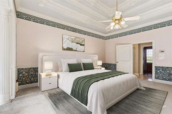 Step into timeless elegance at this stunning Georgian Colonial estate, gracefully set on nearly 10 gated acres in the coveted Canyon Oaks enclave. Designed for discerning buyers seeking sophistication, space & self-sufficiency, this remarkable property offers a rare blend of grandeur, functionality, & flexibility, ideal for multi-generational living or a private family compound. From the moment you pass through the gated entrance, the circular drive, manicured lawns & stately fountain welcome you home. The main residence exudes classic architectural charm paired w-modern luxury, featuring expansive living spaces filled w-natural light & panoramic views of the resort-style pool & tranquil wooded surroundings. Perfect for entertaining, the home’s open flow leads to multiple gathering rooms, a chef’s kitchen + elegant formal & casual spaces for every occasion. Luxurious primary suite offers a private retreat w-its own steam shower + built-in sauna, along with room for exercise equipment or a serene sitting area. Separate mother-in-law or nanny suite provides comfort & privacy for extended family, while the 515 sq. ft. studio apartment & garage apartment offer additional options for guests, income, or creative workspaces. Outdoors, this estate transforms into your personal resort. A sparkling pool & hot tub are accompanied by a 350 SF cabana house, a covered outdoor kitchen w-FP + a pizza oven along w-a charming 200 SF kids’ playhouse or greenhouse—every generation has their place to relax & play. The 1,900 SF workshop with a professional car lift is a dream for hobbyists. With ETJ zoning & no city taxes + a voluntary HOA, this property offers exceptional freedom & value. The attached 1.41-acre platted lot adds even more potential for future building or investment. Ideally located just minutes from Highland Village, Bartonville, Lantana, and Liberty Christian School, you’ll enjoy the best of both worlds—peaceful country living with upscale conveniences close at hand.