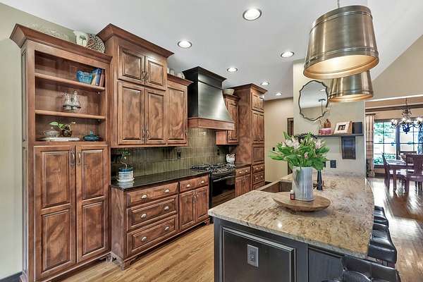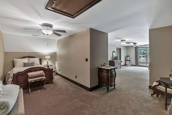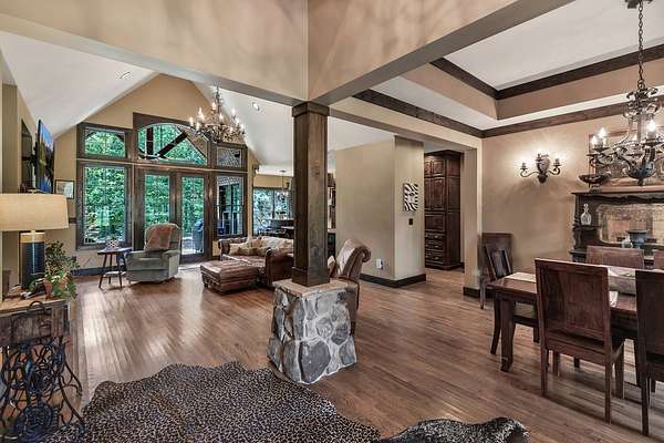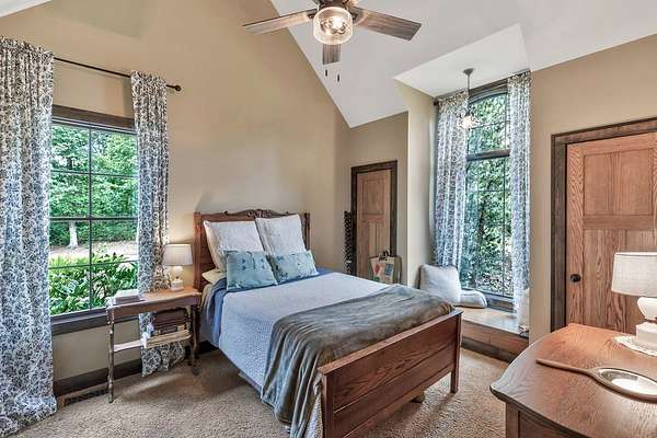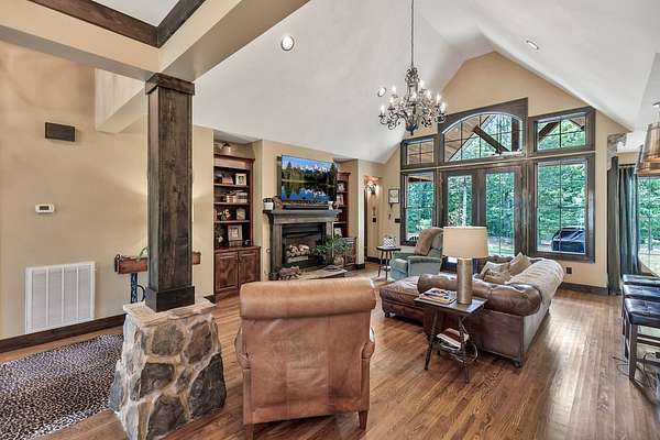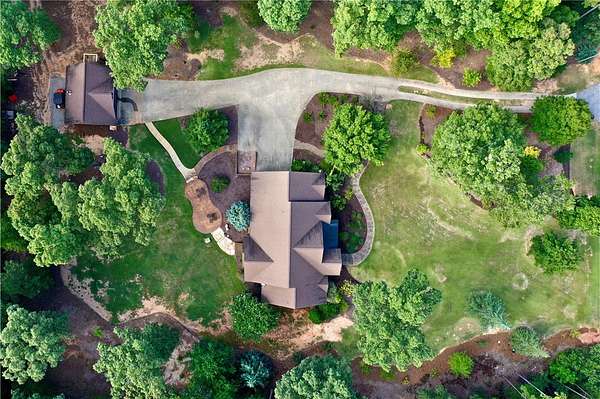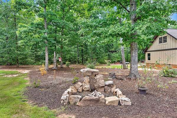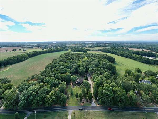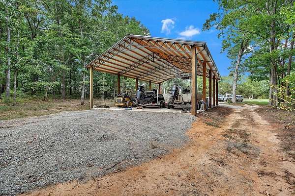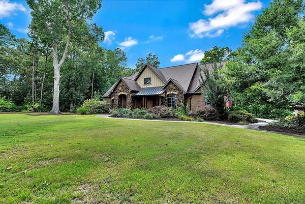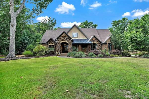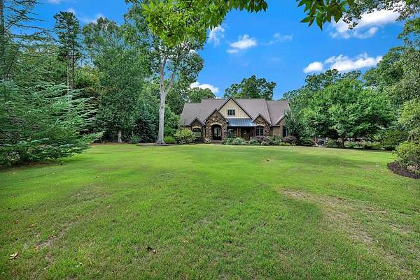 Country living meets rustic elegance in this custom built, picture perfect home on 38.81 acres. The home is tucked away in a picturesque setting with beautiful, extensive landscaping. The driveway is lined with sugar and red maple trees, and throughout the homesite you will find a variety of bald cypresses, kousa dogwoods, carolina sapphires, dawn redwoods, chinese pistache, and butterfly and crimson queen japanese maples, just to name a few. This property is a gardener's dream! Zoysia grass is planted throughout the yard. The majestic stone arches welcome your approach to the front entry which blends perfectly with the exterior stone walls. Inside you will find quality finishes throughout such as red oak solid wood doors, slate tile flooring, Pella Pro-Line double hung windows and custom cabinets by Kinley Cabinets. The main level offers an open living/dining concept with the kitchen overlooking the living area and breakfast nook. The pantry has built-in cabinets/shelving which are perfect for storage. The laundry has recently been updated with a copper sink and granite countertops, a separate butcher block countertop was added for the folding area. Retreat to the primary suite on the main level that offers cathedral ceilings, dual closets and a lovely full bath. You will enjoy a spacious walk in shower, double vanities and a wonderful claw foot 1912 soaker tub. The additional bedrooms are spacious and have cathedral ceilings and large windows to take advantage of the natural light. Upstairs you will find an open space and 4th bedroom area and full bath. The covered porch and backyard are perfect for entertaining. The covered porch offers wood ceilings and stained concrete flooring leading to a lower concrete stained patio area. A 2-car 28x32 detached garage offers plenty of space and the area above the garage could be finished for an inlaw suite or guest house. It has a separate entrance and power and water are available. A 30x48 pole barn was added with concrete floors, power, and water for the additional toys. Whether you have lake toys or farming toys, you will have plenty of room. The additional acreage is a wooded area and open field. There are some paths already established in the wooded areas. The spectacular sunset views are sure to be your favorite feature! Welcome to the perfect blend of luxury and tranquility. This could be your perfect fit for a new home.
