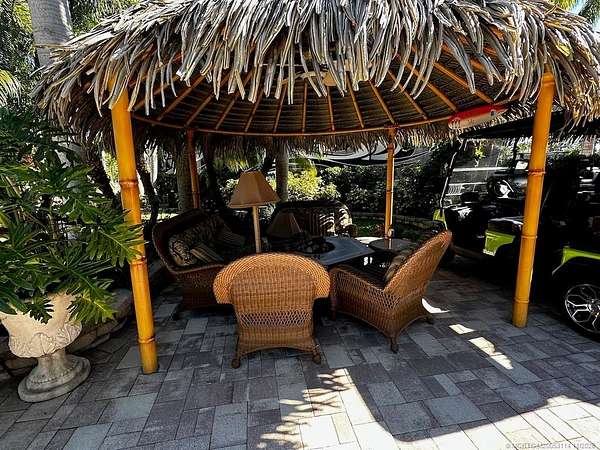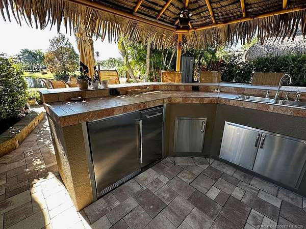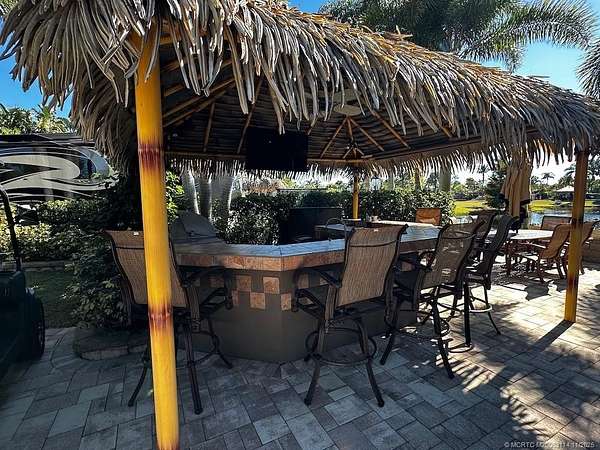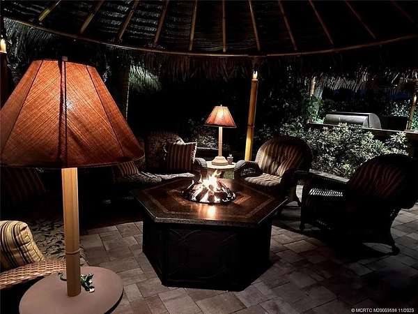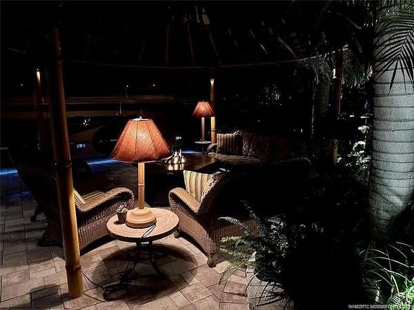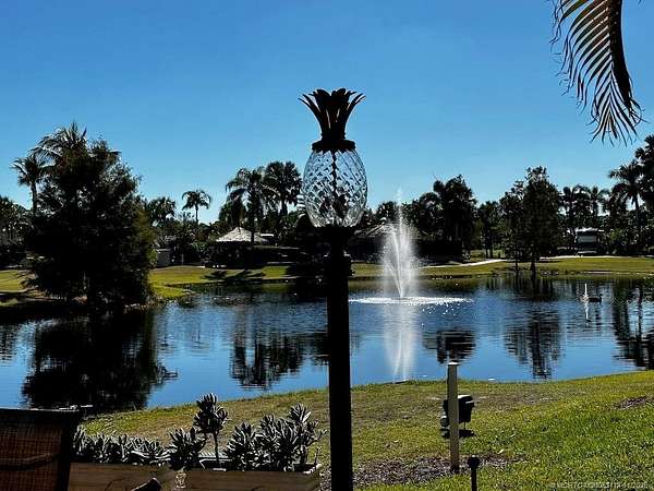 Experience the pinnacle of lakefront RV living with this extraordinary property! This north-facing, expansive 3514 square foot lot sets the standard for sophistication and comfort. The entertaining area is covered in pavers, creating an ambiance that complements the stunning surroundings. With two all-weather tikis, one a captivating round design, and a fully equipped outdoor kitchen with a grill, refrigerator, and double-burner cooktop, it's the perfect setting for culinary adventures sure to be the heart of your gatherings. Fully furnished with top-of-the-line furniture, including dining set, stylish bar stools, plush seating, a fire pit table, TV, umbrella, lamps, and more. The landscaping boasts lush greenery with an abundance of lighting. A park-like grass area adds a touch of serenity and ornamental decor items that enhance the overall aesthetics. The lake view, complete with a beautifully illuminated fountain, is nothing short of breathtaking. Meticulously maintained beauty!