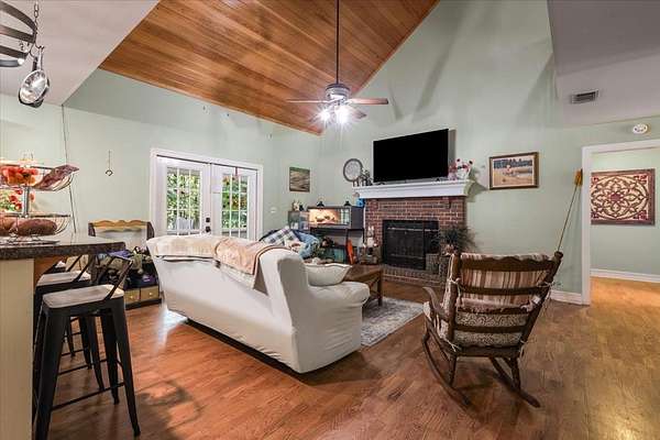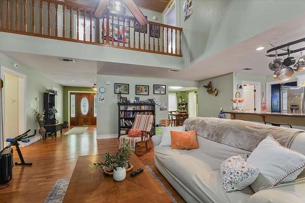 Assumable FHA loan with P&I payment appx $1,429 and 2.5% interest and $330,000 balance. This comfortable, traditional home situated on 5 acres of peaceful property in the beautiful Brook Forest community is ready for a new loving family and priced to sell! From approach you'll notice the charming hardie exterior offering dormer windows, detached garage adjoined by a breezeway, and expansive rocking chair front porch. Once inside you'll appreciate oak wood floors, a spacious formal dining and an open living/kitchen with vaulted ceiling open to the walkway above. Lots of glass gives ample opportunity to appreciate the natural setting but step out onto the huge screened back porch to be even closer! Primary bedroom and one additional are downstairs plus a half bath for company. Upstairs you'll find two large bedrooms and insulated attic spaces which could even be claimed into additional bedroom space. In the garage there's already a 220 circuit installed