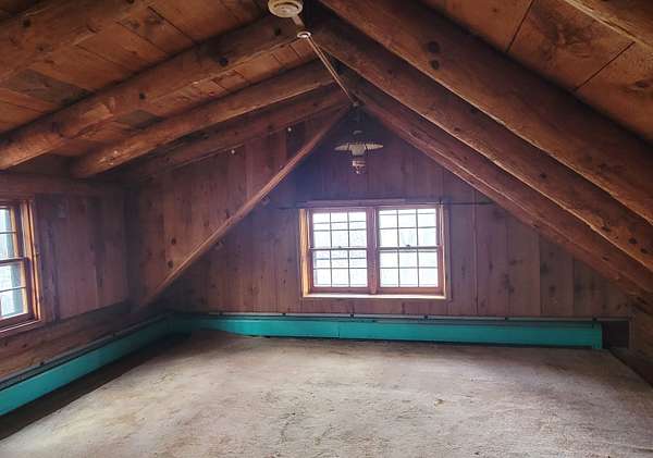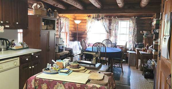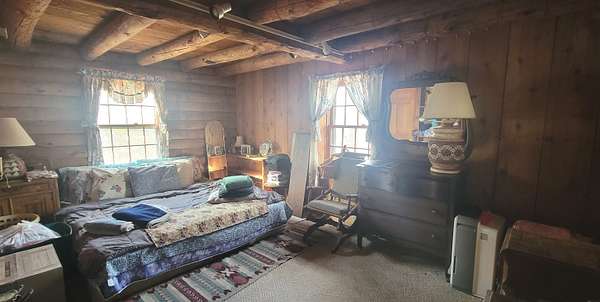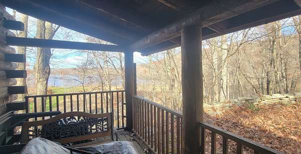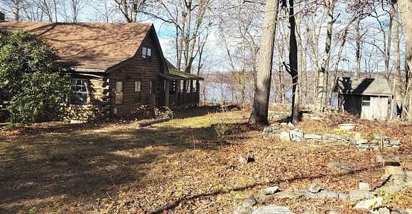 WATERFRONT! PRIVATE LAKE! Discover your own lakeside escape at this true log cabin nestled on the quiet southeast cove of Oxoboxo Lake. With over 100 feet of direct waterfront, this home offers rare privacy, peaceful views, and a front-row seat to nature in every season. Inside, the cabin is a like cozy getaway with warm wood tones, wide-plank floors, and a massive stone fireplace that anchors the open living room. A loft overlooks the main living room, creating space for den, office, reading nook, nap sanctuary... The main level also includes the laundry, and primary bedroom NO stairs, for everyday living. There are 3 bedrooms and 2 full baths, plus a finished walkout lower level with a family room, two additional rooms for guests or hobbies, and generous storage. Outside, two covered porches invite you to slow down and enjoy the breeze off the water. Explore stone walls, walking paths, rock outcrops, and a garden area, or cool off in the oval above-ground pool with its surrounding deck. Underground utilities, a two-bay open lean-to garage, and a circular driveway. Whether you're looking for a year-round home or a weekend hideaway, this cabin delivers the charm of rustic living with the comfort of thoughtful updates-and the rare luxury of true private waterfront living.