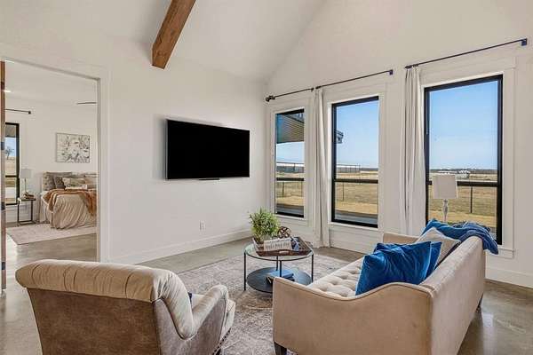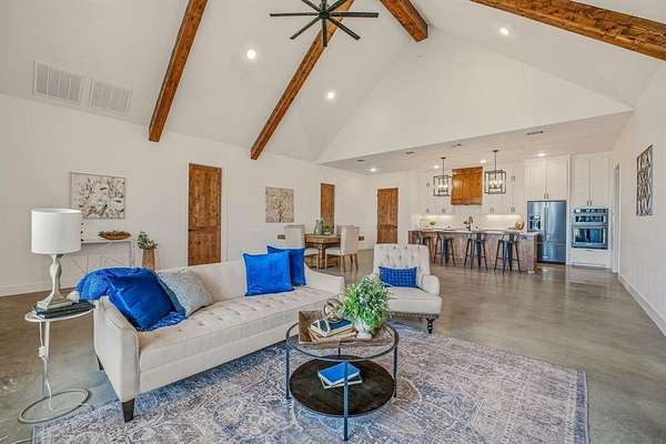 Stop looking right now because this is the place you've been looking for! This 4,292sqft home was very well thought out when designed. The main portion of the home features 3 bedrooms and 2 full bathrooms with soaring ceilings and open concept. You'll always have a spot in the shade with the wrap around porch! The kitchen has quartz countertops and the appliances look like they have never been used! The master bathroom has an enormous carwash shower and a closet with more than enough space for all of your clothes. The back section of the home is what really sets this home apart! There is an enormous indoor-outdoor living space with two glass garage doors and a full apartment! There is a bedroom and full bathroom to use as a separate guest quarters, pool house, or sleep over room for your kids and their friends. One of the most unique features of this beautiful home is the gun room that also doubles a storm shelter! Complete with vault door! After a long day, you can step out to the huge back porch and slide into your pool! Entertain for hours with the outdoor kitchen, oversized back porch, and outdoor fireplace. There is a half court basketball court next to the pool that has painted lines for accuracy and converts to a full volleyball court! The property is cross fenced with custom high capacity cement water troughs and horse sheds. The shop is 1,600sqft with spray foam insulation, has a washer & dryer hookup, with a half bathroom. It wouldn't take much to turn part of it into a full blown apartment! The barn is 2,300sqft and could easily be converted into horse stalls with plenty of room left over for hay, trailer, or equipment storage. There is also an RV hookup at the barn as well. The owner also left plenty of room at the front of the property for an arena. This property truly checks the boxes for anyone looking for a nice horse property in the Stephenville area. You could wear out a good pickup searching for a better maintained property than this one!