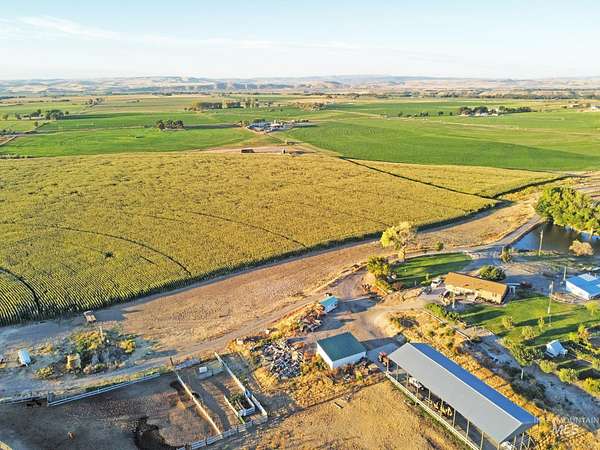 This 447+/- acre highly functional farm near Vale is a well-developed agricultural operation. 410+/- acres under irrigation, water rights from VID distributed by 10 center pivots, creating a strong foundation for hay and rotational crop production. South fields are gravity-pressurized pivots, northern parcels are supported by pumps, ensuring reliable water delivery. Two ponds for livestock support. Planted in hay and rotation crops, hay yields have been 7+/- ton per acre. A hay barn 40x120, farm shop, corrals, wood shop, and additional storage buildings. Another set of agricultural structures, includes large equipment storage bldgs with commodity bins and feed bunks, covered livestock areas, a former milking barn w/ 220 power, a 35x40 farrowing barn, grain bin, concrete silage pit, and more shop space. The main home is 2,808+/- sq ft 3 bdrm 2 bath, the second home is 1,695+/- sq ft, 3 bdrm, 2 baths and the third home which is in a life estate. A rare opportunity to acquire a large irrigated production orientated farm.