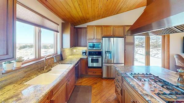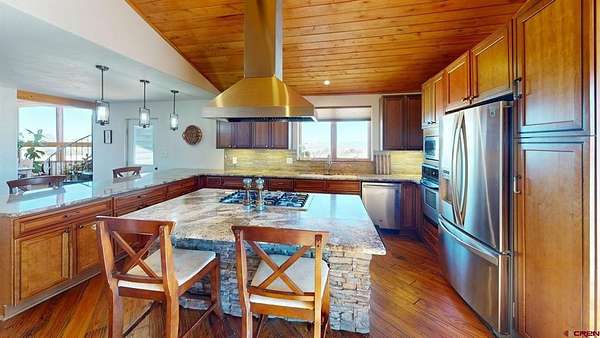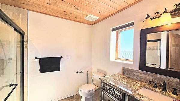 Dee Plucinski, Steffens and Company Realty, Inc, C: 719-873-5605, dee@slvluxuryproperties.com, www.crenmls.com: Where the Valley Meets the Sky | 38 Acres | BLM Border | La Garita, ColoradoMorning light pours through a wall of east-facing windows as the sun rises over the Sangre de Cristo Mountains, casting golden light across the San Luis Valley below. From this home, you don’t just see the mountains — you live inside the view.Set on 38 private acres in the La Garita area of Del Norte and bordering BLM land, this newly renovated 4 bedroom, 2.5 bath home offers 2,200+ square feet of bright, open living space surrounded by towering boulders and dramatic rock formations that feel sculpted by time itself.Step outside and you are immediately immersed in the landscape. Massive stone outcroppings create natural pathways for hiking and exploring. The formations are ideal for bouldering — a style of rock climbing done on shorter rock faces without ropes, relying on strength, balance, and problem-solving. It is adventure right out your back door, with the privacy and quiet that only acreage and public land borders can provide.Inside, the home is filled with light and warmth. Vaulted tongue and groove wood ceilings and expansive windows frame the valley like living artwork. Log siding details create a true mountain cabin aesthetic while maintaining the strength and durability of steel framing and concrete construction.The kitchen is built for gathering. A large granite island with stone base detail anchors the room, complemented by a gas cooktop, commercial-style vent hood, stainless appliances, soft-close cabinetry, and real wood flooring. French doors open to a spacious concrete patio where evenings are spent grilling, entertaining, and watching the sun set over the San Juan Mountains to the west.The main-level bath offers a spa-like feel with a freestanding soaking tub, glass walk-in shower, marble-style vanity, and warm wood ceiling accents. Hand-textured walls and thoughtful updates throughout give the home a refined yet comfortable mountain character.Upstairs, the primary suite captures sweeping valley views and features a private en suite bath and walk-in closet. An additional bedroom, half bath, and secondary family room provide flexible living space for guests, hobbies, or a home office.Underneath the home is an approximately 2,000 square foot garage — large enough for multiple vehicles, ATVs, side-by-sides, projects, workshop space, and extensive storage. The home is exceptionally solid, built with steel framing and concrete construction and topped with a 50-year metal roof, offering long-term durability and peace of mind in Colorado’s mountain climate.The property is supported by a strong 280-foot domestic well producing 12 gallons per minute at time of drilling. A Colorado domestic well allows for household use in up to three dwellings, irrigation of up to one acre of gardens or lawn, and watering of domestic animals. Propane in-floor radiant heat and Ciello high-speed fiber internet add modern comfort to this private mountain setting.Previously used as a VRBO, the property offers income potential. Short-term rentals are allowed per HOA guidelines, and Saguache County does not currently require a county permit for VRBO operations. Buyers should verify any future regulatory changes.This is the kind of place where mornings start with mountain light, afternoons are spent exploring stone and sky, and evenings close with wide-open sunsets.If you’ve been looking for privacy, acreage, direct public land access, and views that truly stop you in your tracks, this La Garita property delivers.All appliances, including the washer and dryer, will stay with the home. Furnishings can be negotiated separately if desired.Please see the virtual tours section for the drone video and 3D video tour.