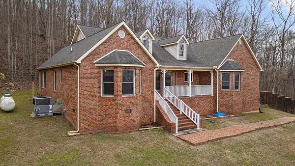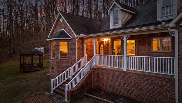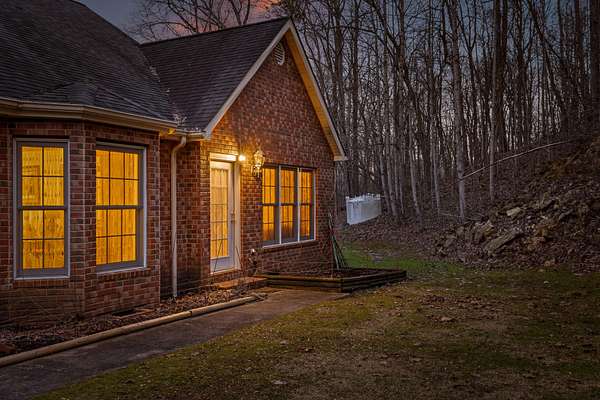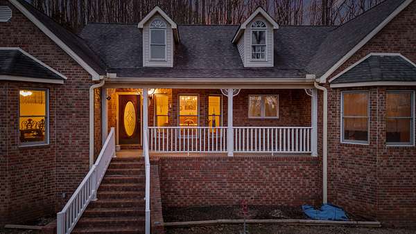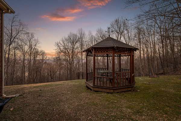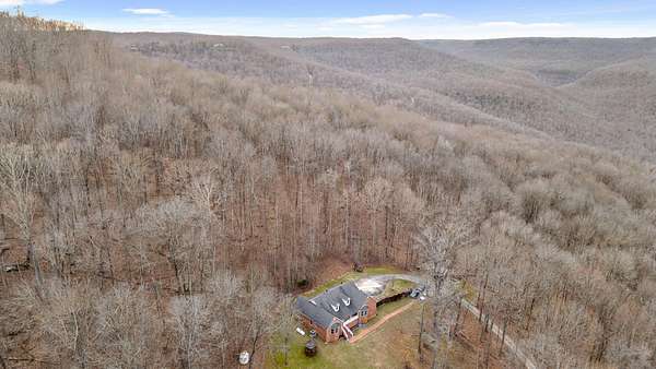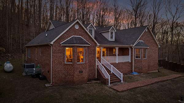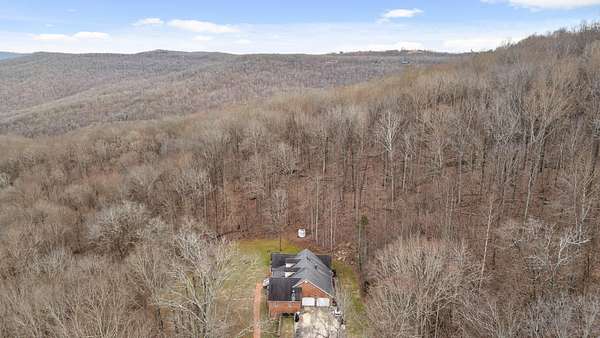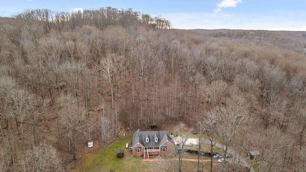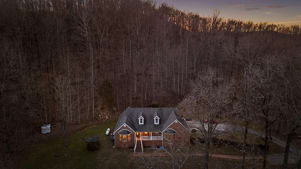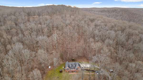 Escape to serenity on this 32.6-acre estate, offering assumable greenbelt status and divided into four 8-acre plats for privacy, space, and investment potential. Step onto the covered porch and into a warm, inviting home. The Great Room features a dual gas/wood fireplace and tray ceilings flowing into a bright family room. The well-appointed kitchen boasts ample custom-made oak cabinetry, generous counter space, and Corian countertops, while the dining area's bay windows showcase breathtaking views. The private primary suite is a retreat of its own, featuring bay windows, a sitting area, an oversized walk-in closet, and a luxurious en-suite with a whirlpool tub, walk-in shower, and dual vanities. Tray ceilings with crown molding add an extra touch of elegance. Two spacious bedrooms offer crown molding, with the front bedroom featuring a bay window and sitting area. They share a well-appointed bathroom with dual vanities and a tub/shower combo. The laundry room is conveniently accessible from the primary suite. Designed with accessibility in mind, the home features 36'' solid wood 6-panel doors. A half bath is located in the garage. A high-ceiling 12-14 ft unfinished basement awaits your vision, complete with a full bath, fireplace, and storage. The oversized 2 1/2 -car garage includes floor drains, water access, and its own half bath. Modern amenities abound, including fiber optic internet, underground utilities, an 1,100 ft concrete driveway, and electric 400-amp service for the house and garage. A powerful diesel backup generator ensures uninterrupted comfort, keeping the TV, fridge, microwave, and nearly every essential system running in case of a power outage. Additionally, the home qualifies for an insurance discount thanks to a Sewanee Fire Department-certified hydrant located directly behind the property. Security includes a Ring doorbell. Enjoy a lifetime-warranty water heater, new 5-ton HVAC, gazebo, and storage shed. Schedule a tour today!