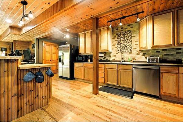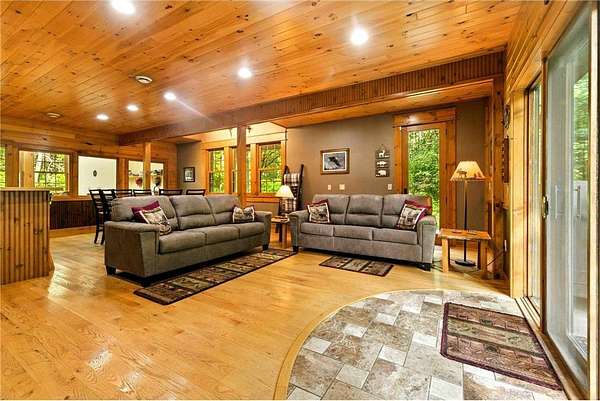 Experience a totally different style of living with complete relaxation and privacy. Whether you are looking for a vacation home or rental, multi-generational living, or just making memories with extended family and friends - this is the ultimate location! With over 3500 square feet of living space there is room for everyone to enjoy. 2 large open concept living areas with complete kitchens provide room for everyone to spend time together but still have enough space to spread out. The 3 separate sets of private bedrooms and bathrooms provide ample space for quiet and relaxation even if the house is full. Massive garage space with high ceilings that doubles as additional living space/game room complete with full HVAC set up. There are so many opportunities to enjoy the peacefulness of the outdoors on this large parcel on a semi-private lake. The lakeshore is amazing with a gentle slope to the dock and a hard sand bottom which make the area perfect for swimming, fishing, kayaking, and more. Enjoy all that the area has to offer from shopping to ATV trails and then retreat to the priceless privacy you simply can’t find elsewhere. Property is being sold with most contents included. There are simply endless possibilities for this property that need to be seen to appreciate. Sale is subject to county approval of subdivision in process.
