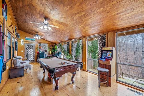 Exterior pictures Coming Soon! Ready to own your own Piece of Heaven located on 23 Acres with Private Entrance? This Home is Nestled in the foothills of Lookout Mountain Fort Payne and offers 3200 sq feet of living space with 3 bedrooms, 3 full baths, 1 half bath, sleeping loft, game room/sunroom, screened porch, covered porch, inground swimming pool! Lots of upgrades to include ROOF and HVAC!! This Property offers riding trails for your ATV's, covered structures for holding tractor and ATV, Chicken coop, raised flower beds and much more to make this YOUR Unique Home!