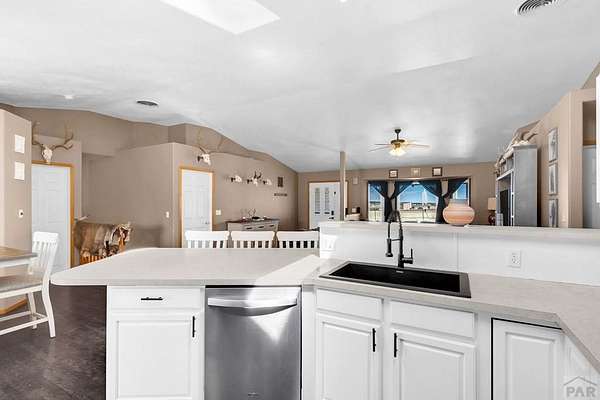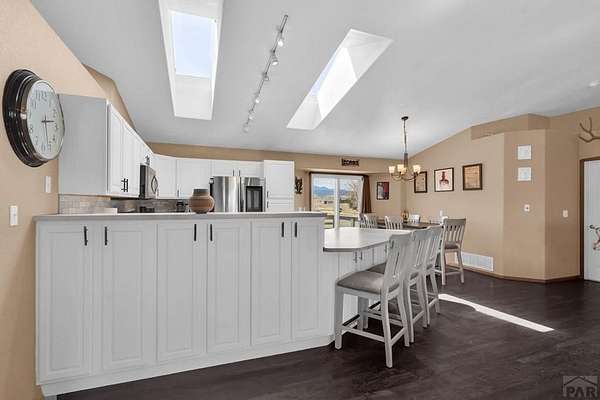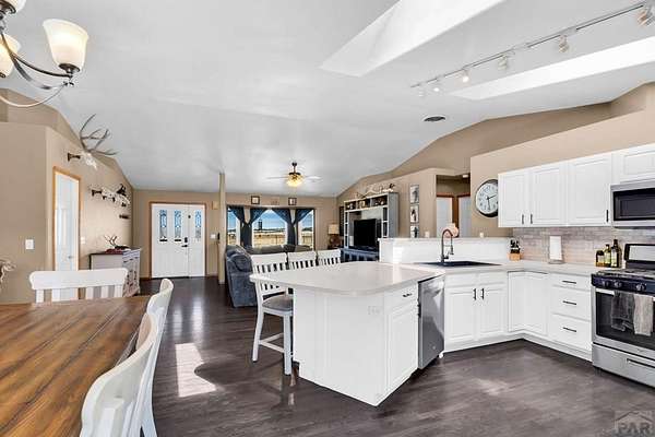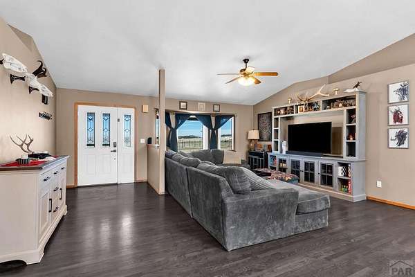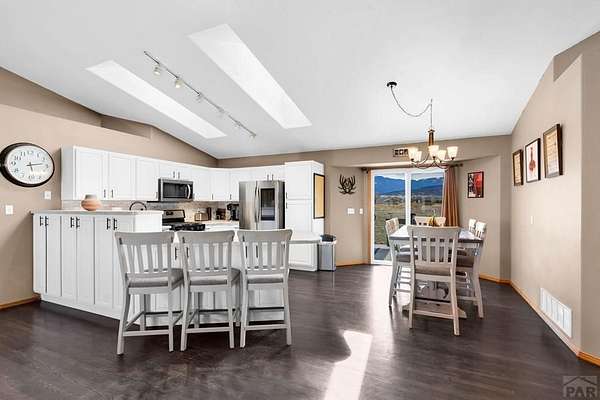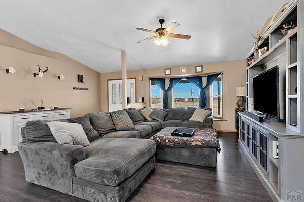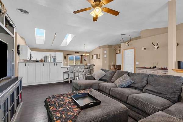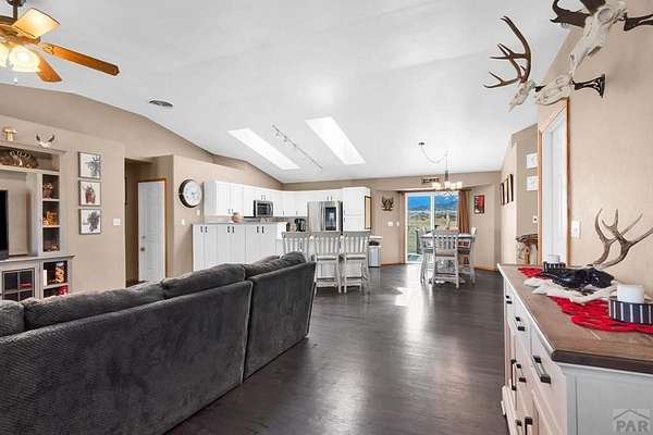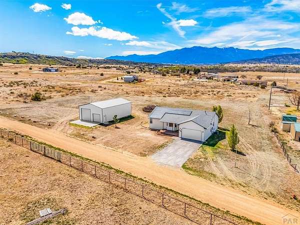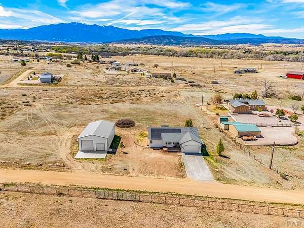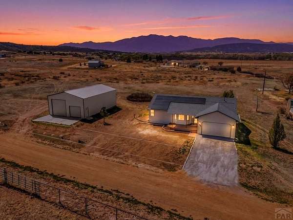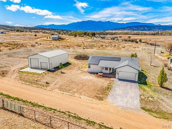 Spacious 4-bedroom, 3-bath home in Colorado City offering the perfect balance of accessibility and privacy. Conveniently located with easy access to CO-165 and I-25, this property feels tucked away and secluded, with no HOA restrictions. Situated on 1.78 acres, the home boasts spectacular views of Greenhorn Mountain that can be enjoyed from the backyard deck-ideal for relaxing or entertaining. Inside, the home features complete main-floor living, including a convenient laundry area, along with gorgeous dark hardwood floors that have been recently refinished, adding warmth and elegance throughout. The kitchen has been thoughtfully updated with refinished cabinetry and upgraded appliances, creating a stylish and functional space. The finished basement provides a versatile separate living area, complete with a wet bar that can also serve as a kitchenette-perfect for entertaining guests or multi-generational living. Recent improvements include a new roof, new AC and furnace, solar panels for energy efficiency, and a radon mitigation system for added peace of mind. Rounding out the property is an impressive 30' x 50' oversized shop offering endless possibilities for storage, hobbies, or workspace. This property combines comfort, functionality, modern upgrades, and breathtaking scenery in one exceptional package.