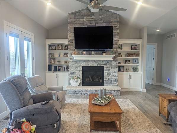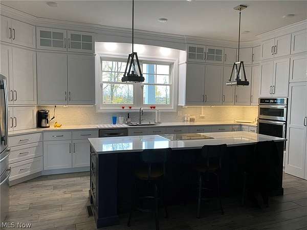 Private Estate on 29 Acres with Extraordinary Garage Space - Enter through the gate and travel the 500-foot concrete driveway, designed to provide privacy, security, and a peaceful setting well back from National Road. Built in 2018, this custom home offers thoughtful design, exceptional space, and a layout that blends comfort with entertaining. The heart of the home is the expansive eat-in kitchen, featuring a breakfast bar and a hidden pantry feature, opening seamlessly to the great room in a modern open-concept floor plan. A formal dining room with a coffered ceiling adds an elegant space for gatherings. The main-floor master suite is privately located on its own wing and includes a beautiful shower feature. Two additional bedrooms on the main level each have their own dedicated full bathrooms, creating ideal comfort for family or guests. A convenient half bath and main-floor laundry complete the primary level. Each bedroom opens directly to the rear patio, creating an effortless connection to the outdoors. The full 2,873 sq. ft. basement adds tremendous potential and already includes the home's fourth full bathroom. For many buyers, the true showpiece will be the extraordinary garage capacity: Attached garage: 62 * 29 (approx. 1,800 sq. ft.) Detached garage: 40 * 20 Detached garage: 30 * 14 Whether you're a car collector, hobbyist, or simply need exceptional storage, opportunities like this are rarely available. All of this is situated on 29 acres of private land-a property that truly offers something you don't see every day.