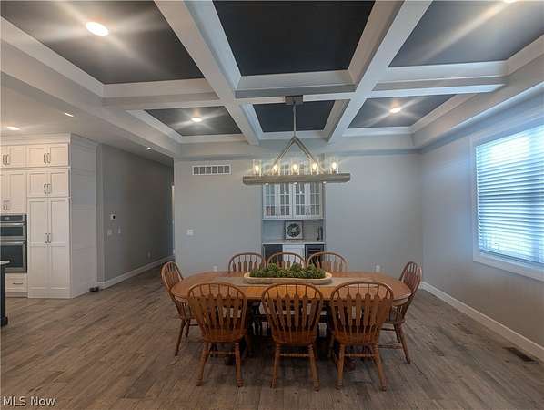 - Beamed Ceilings, Breakfast Bar, Built In Features, Ceiling Fans, Coffered Ceilings, Dry Bar, Kitchen Island, Open Floorplan, Pantry