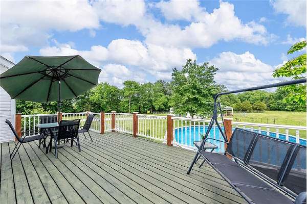 Est $4,081/moEstate Style Property. 18+ ACRES - White vinyl fencing along front & leads you down your private drive to one-of-kind, estate-style property/farm & luxurious country home w/coordinating 40x60 pole barn w/4 stalls, electric & water, shed & chicken coop. Cattle panel & T-post wire fencing for your horses, animals or livestock. Wooded privacy on 3 sides & plenty of open ground. Original owner, well-maintained home w/new roof, main level primary suite w/luxury bath, open floor plan, t-stair, spacious kitchen w/center island, plenty of cabinets & counter space, double pantry. UL Bonus/flex room, Laundry room & 3 BRs. W/O LL FR. 26x14 Deck, 6x6 quality framing, zoned geothermal HVAC, above ground pool & oversized 3 car side-entry garage.