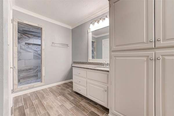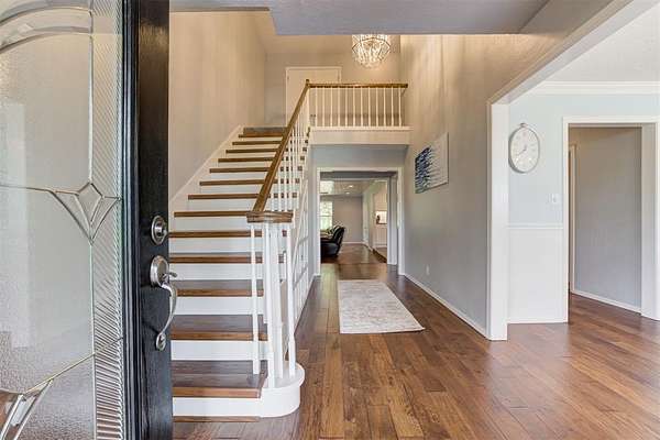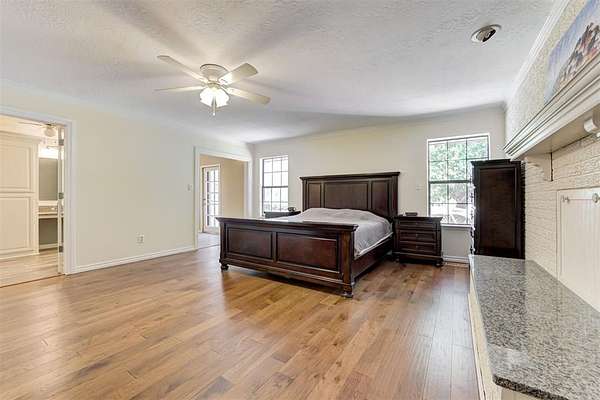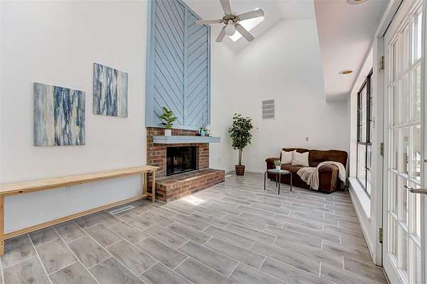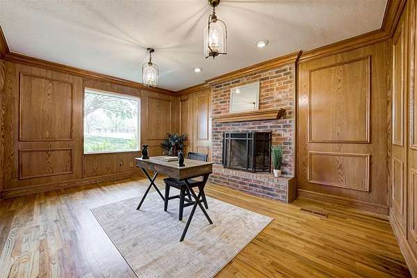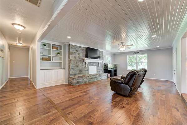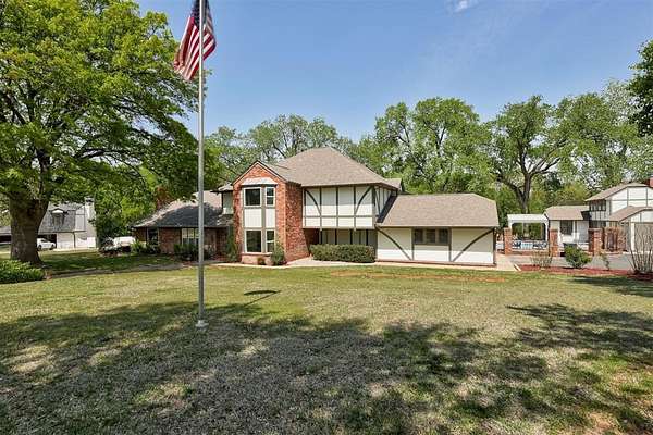 VA ASSUMABLE LOAN AT 2.25%!! Tucked at the end of a quiet cul-de-sac on 2 private, tree-lined acres, this Tudor-style home offers the perfect blend of privacy, charm, and convenience. Step outside to your own resort-style retreat featuring new decking, pool with diving board, a pool house with full bath and kitchenette - perfect for use as a gym, art studio, guest quarters, office, and more! The expansive yard below provides additional space to play, gather, and enjoy the outdoors. Inside, engineered hardwood floors flow throughout the main level, leading into a beautifully updated kitchen with a large island, gas cooktop, pull-out cabinetry, and a spacious walk-in pantry. With two living areas, two dining spaces, and a dedicated study, the layout offers flexibility for everyday living and hosting. The primary suite is a true retreat, complete with a fireplace, sitting area, and private patio access. Recently remodeled, it features hardwood floors, new shower, new countertops, and fresh paint for a clean, elevated feel. Upstairs includes three spacious bedrooms with large walk-in closets, one with an en suite bath, plus a huge flex room perfect for hobbies, storage, or additional living space. Peaceful acreage living with modern updates-just minutes from shopping, dining, and everything Norman has to offer.