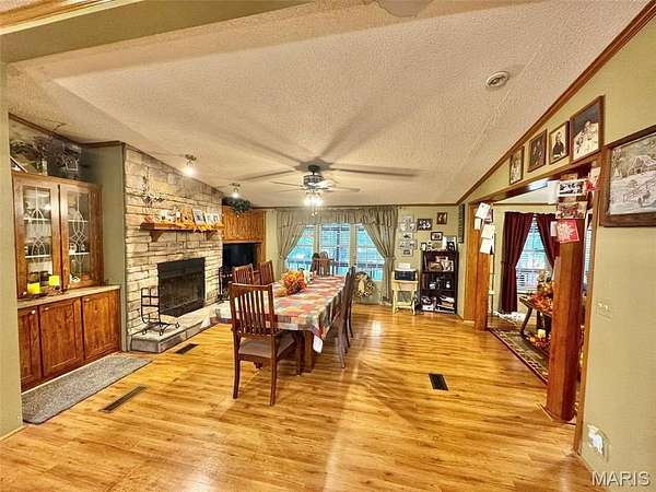 Welcome to your private retreat just minutes from Mark Twain Lake! Nestled on 10 secluded acres, this beautifully maintained home offers peace, privacy, & an unmatched connection to nature. Step onto the stunning wrap-around deck and take in incredible panoramic views, often filled with local wildlife passing through. Inside, the open floor plan features a spacious kitchen, large living area, & a generous master suite with ensuite bath. A wood-burning fireplace in the dining room adds warmth & charm, making it perfect for entertaining year-round. The property includes a private drive, an oversized shed ideal for housing vehicles, ATVs, & equipment, plus a cozy outdoor sitting area to enjoy the tranquil surroundings. Whether you're looking for a full-time residence or a weekend getaway, this home offers the perfect blend of comfort, space, and seclusion. If you're even remotely interested, this is an in-person must see property! Schedule your VIP appointment, nature is waiting!