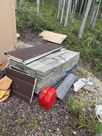 Prime property to build on! south facing mountain view on nearly 5.5 acres, with two building sites already at different stages of development - There is already power on the property, as well as a solar powered, well-insulated 24' x 40' Weatherport- shop ready for you to work in. For the solar, there are four Rolls Surrette L 16 batteries. Shop is partially insulated with materials on site ready for you to finish the job! Dry storage available to store your building materials in! With 50k+ worth of dirt work already put into the driveway, it would be easy to pull up a camper to live in while you build your dream home! Only 11 minutes to the pit for dirt! Greenhouse and shed on property. Old crib septic still on site where cabin once was. With a little clearing, you could have sun peeking in from the south east as well! Two 500 gallon oil tanks on property. Connex and pavers to convey. Generator and tractor with large box blade could convey with an acceptable offer.
