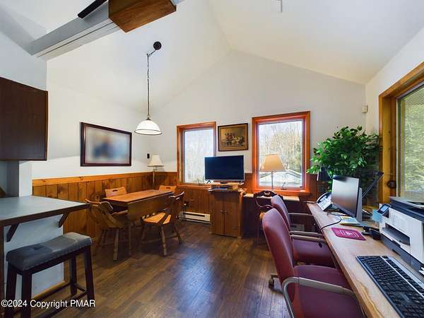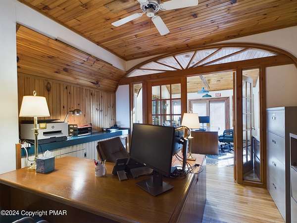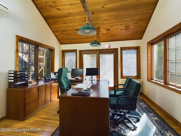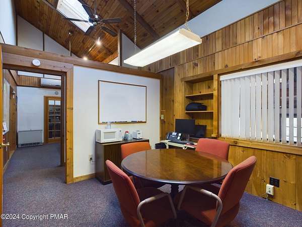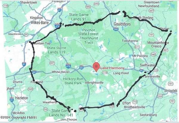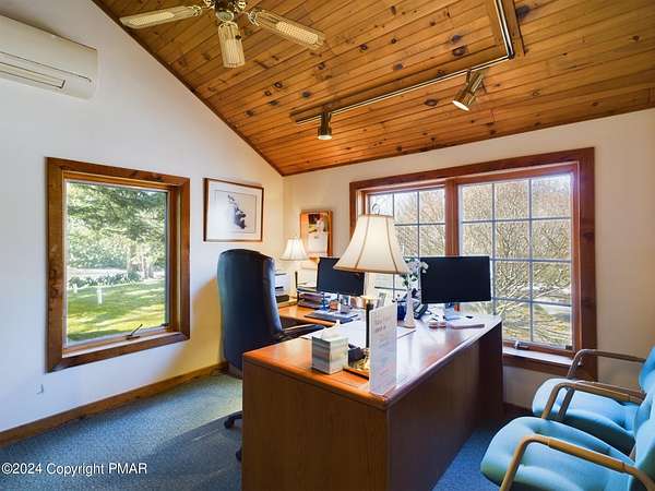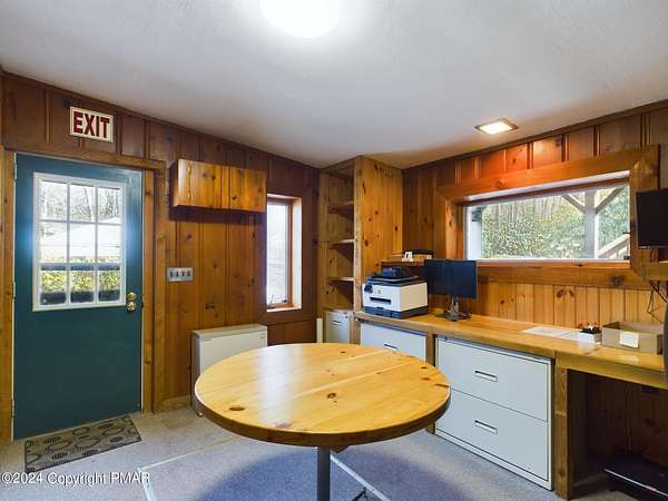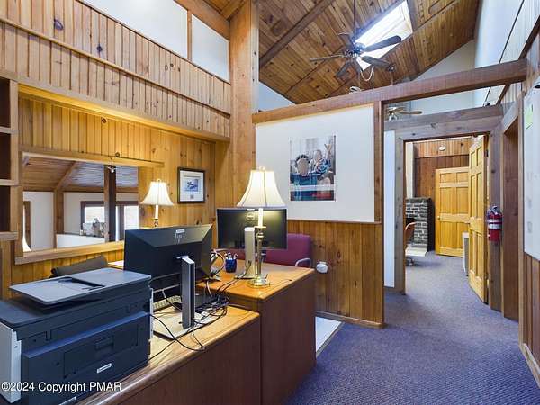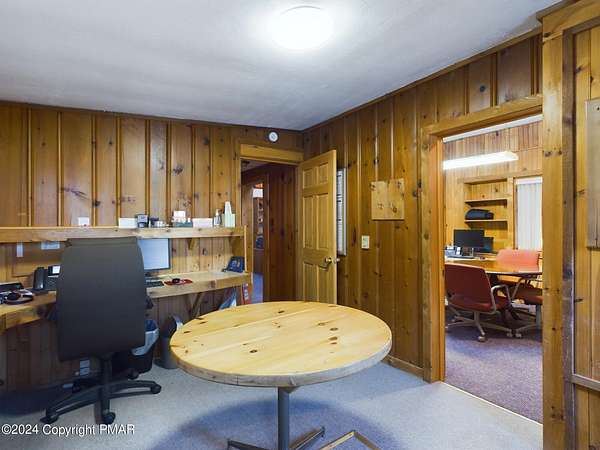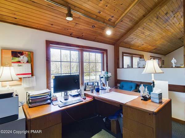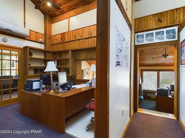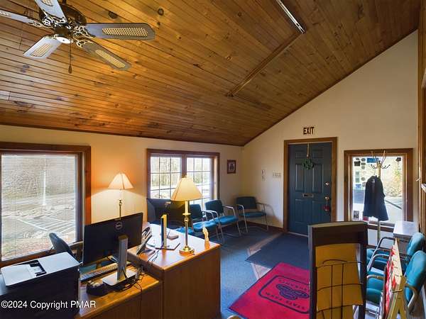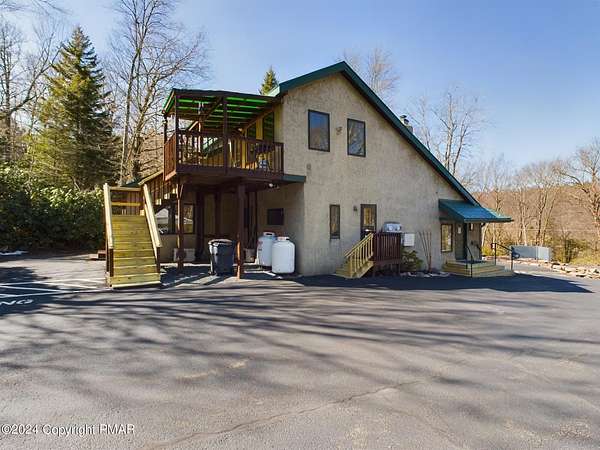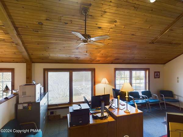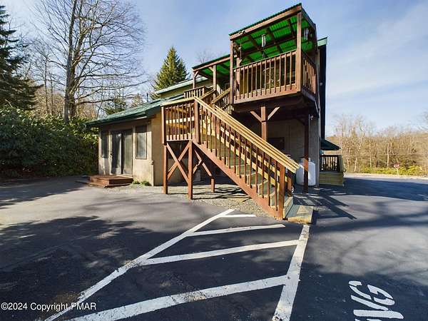 Commercial Office building on 2 acre site with large parking area and storage building. LOCATED IN THE CENTER OF THE POCONO PLATEAU. see attached map. Located in Lake Harmony just off Route 903. Main building has office space on the 1st floor which includes reception, offices, conference room(s) and bathroom. The 2nd floor has its own separate entrance with full bathroom, kitchen, team office and more office space. Building has been impeccably maintained with a $30k+ metal roof and skylights installed. Property includes 1.5 acres of undeveloped land and a 600 sq ft barn with electricity, heat and water. Minutes to I-80 and I-476. Near entrance to Big Boulder and Split Rock. Paved parking lot! SEE ATTACHED DOCUMENTS FOR MORE INFORMATION. Location and Property: Located in the center of the Pocono Plateau, see attached map. Located 5 miles west to the Pennsylvania Turnpike's Northeast Extension and 5 miles east to Route 80 and Route 33 is less than 20 miles to the southeast. Easy highway traveling coming and going in all directions. The property includes 1 1/2 acre undeveloped land behind the half acre with the buildings and is looking forward to a new purpose in life. The Kidder Township code is R-1 and there is a variance for an office. The Buildings: Over the last 4 months over $29,000.00 was invested in upgrades and improvements to include township codes. The core of the building is a 20 x 30 concrete block construction built about year 1950. The major additions were constructed starting about 1985. A large office room with windows can easily be converted to a 10-seat conference room. The 2nd story of the building is now intended as office workspace and/or team lounge. It includes a kitchen and bathroom with shower. There is also a barn of about 600 sq ft under roof. The barn has electricity, and water and part of the barn is heated. Being sold including office furniture. The seller is offering to carry a 10 year mortgage at 5% (or 15 year schedule at 5% with a balloon at 10 years.)