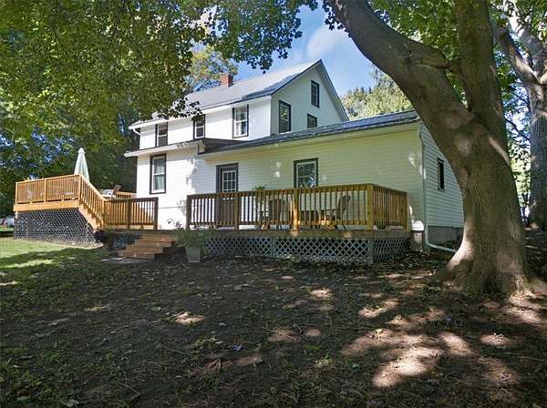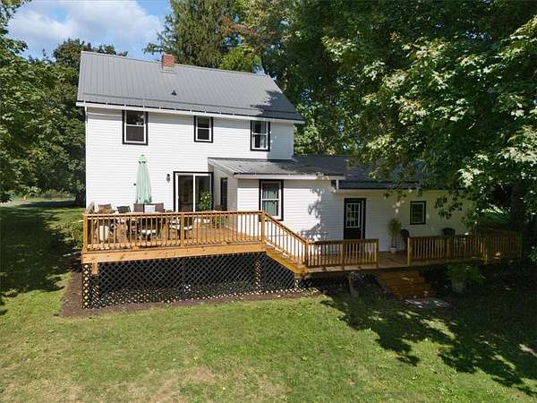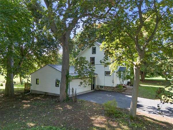 Nestled on .55 of an acre 3856 Ridge Rd in Williamson, NY, this charming two-story colonial offers a blend of classic elegance and modern updates. Access to serene Williamson Town Park & walking trails, this property promises both privacy and convenience. The exterior boasts a newly paved driveway (2024), complemented by new siding (2024) and a durable metal roof installed in 2020. Gutters were updated in March 2025, and a new deck, added in November 2024 and freshly stained in spring 2025, provides the perfect spot for outdoor relaxation. A new retaining wall and walkway (2024) lead to the welcoming front door. Inside, you'll find four bedrooms and one and a half bathrooms, with beautifully refinished hardwood floors (2024) adding warmth and character. The kitchen shines with halo lights, tile floors installed in 2023, and stunning quartz counters (September 2025). Brand new appliances, including a stove, microwave, and fridge (all 2025), along with a stylish backsplash, make this kitchen a chef's dream. A sliding glass door offers easy access to the deck. The downstairs bathroom, remodeled in 2023, included space for a shower. Upstairs, the bathroom has been tastefully redone in 2023 with tile and shiplap. Additional features include a walk-up full attic & shed.