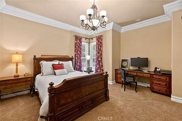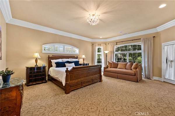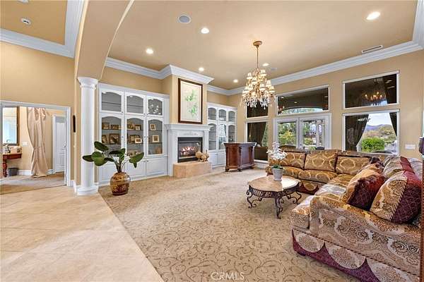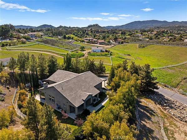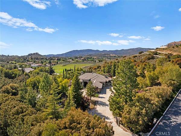 Situated just minutes from the front gate of La Cresta, this exquisite 5-acre estate offers the perfect blend of luxury, functionality, and privacy. Spanning approximately 6,800 square feet, the main residence is a testament to quality construction and thoughtful design. Soaring 12-foot ceilings, crown molding, and commercial-grade glass doors define the expansive interiors, which include 4 spacious bedrooms, 2 fireplaces, and an executive office ideal for working from home.